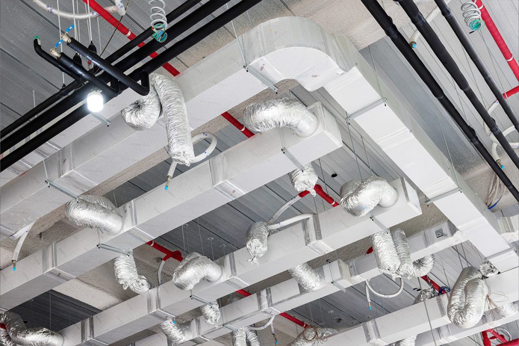 ㈜코원이앤씨가 과천 지식정보타운 11-3BL 신축공사 현장에서 시공하고 있는 배관과 덕트