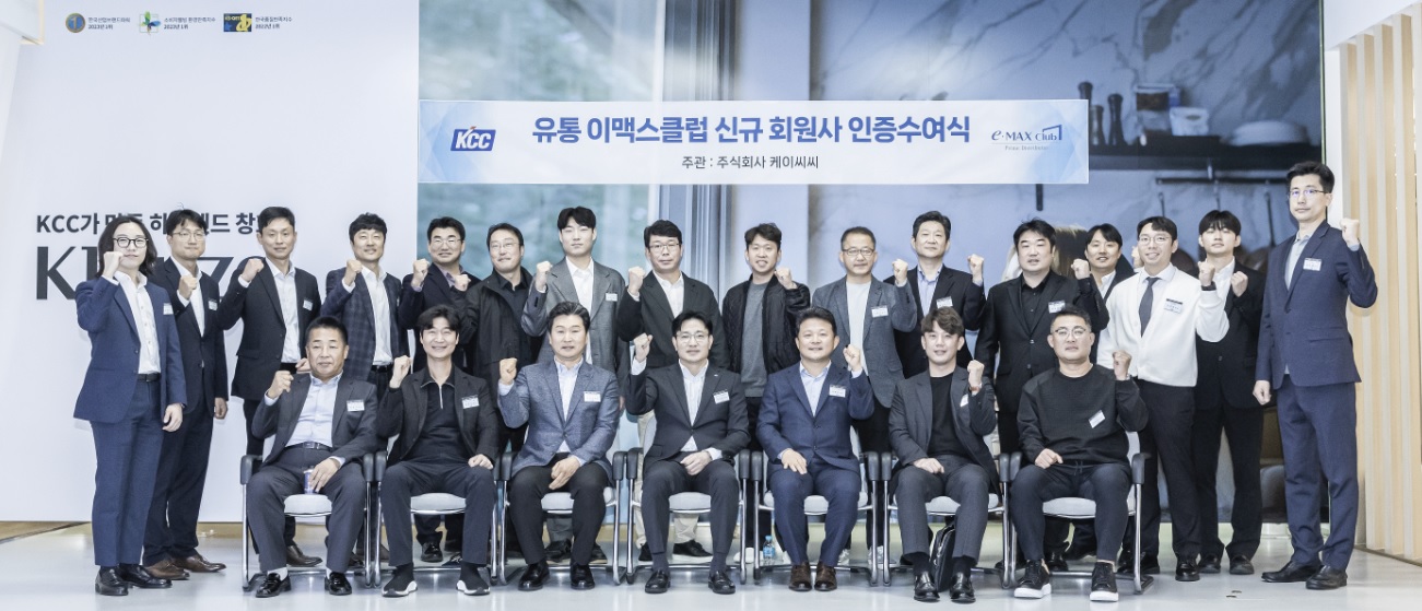 KCC(대표 정재훈)는 최근 ‘유통 이맥스 클럽’ 신규 대리점 25개에 대한 인증식을 진행했다. 이번 인증식을 통해 KCC ‘유통 이맥스 클럽’ 대리점이 98개로 확대됨에 따라, 고객들은 전국 어디에서나 믿고 맡길 수 있는 KCC 창호대리점을 만나볼 수 있게 됐다.