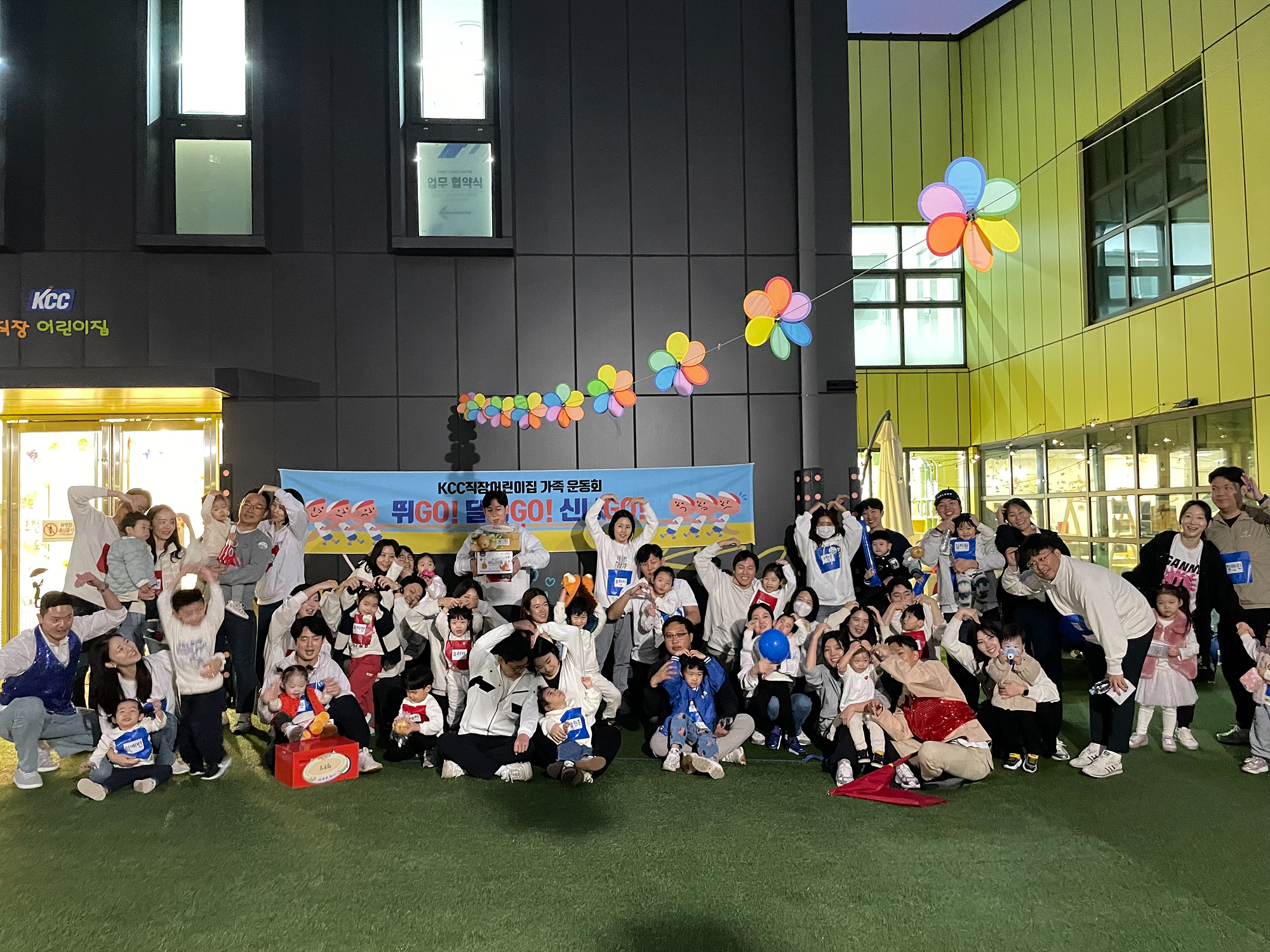 KCC는 임직원들의 균형 있는 일과 가정생활을 위해 자체적으로 꾸준히 KCC직장어린이집을 운영 중에 있다. 이번 운동회는 상반기 때 진행했던 북데이, ‘그림책에 풍-덩’에 이어 어린이집에서 주최한 가족참여수업의 일환이었다.