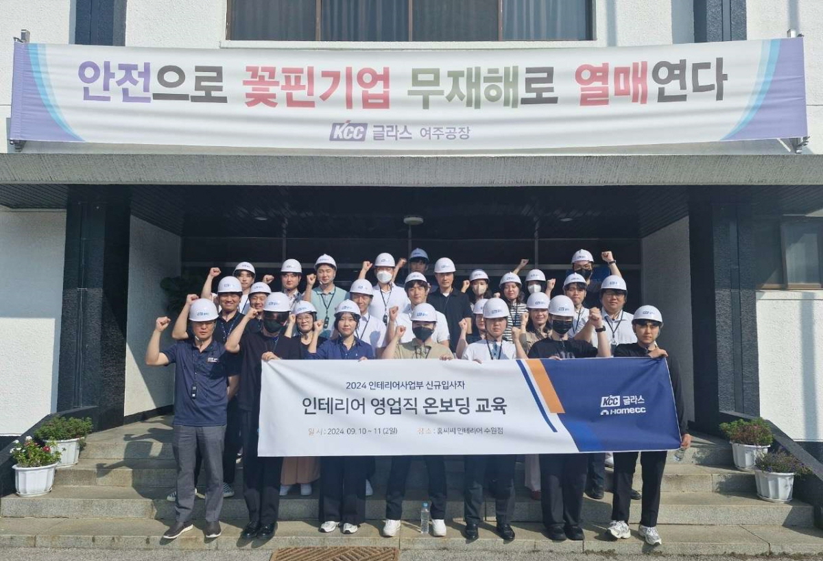 지난 9월 10일부터 11일, 2일간 KCC글라스 인테리어사업부 신규 입사자들의 온보딩 교육이 진행됐다. 이번 교육은 홈씨씨 인테리어 수원점 세미나실, KCC글라스 여주공장, 미성산업에서 열렸으며, 2024년 6월 이후에 인테리어 영업직으로 새로 입사한 경력 사원 7명이 참가했다.