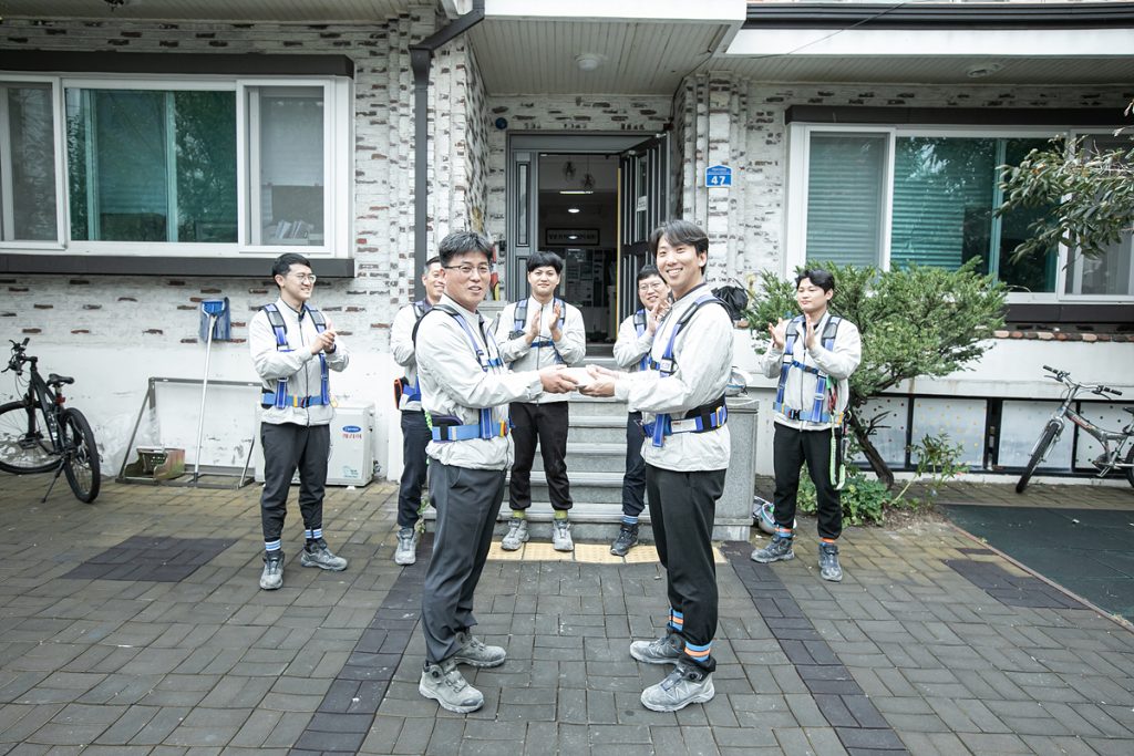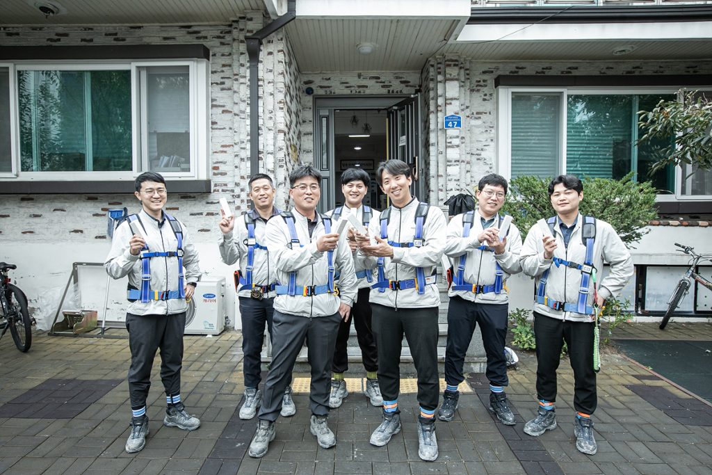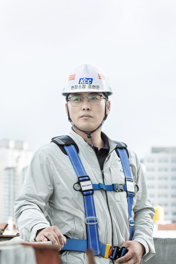 이런 복합 주거 공간을 성공적으로 지어 올리는 것은 결국 현장을 지키는 건설인들이다. 대전 씨엘리오 스위첸 현장에는 각자의 분야에서 최고의 역량을 발휘하는 팀이 있다. 우선 안전보건총괄 책임자로서 안전과 시공을 총괄하는 조현준 현장소장과 안전을 위해 불철주야 노력하고 조언을 아끼지 않는 변기주 사원. 그리고 모든 공정의 스케줄 관리와 시공 품질 관리를 책임지고 있는 베테랑 공사팀장 김영훈 차장. 그런 김영훈 차장을 서포트하고, 일선에서 시공 및 품질 확보를 위해 땀 흘리며 노력하는 원용희 대리. 품질 확보에 진심인 지형철 실장과 김동현 대리가 있다.
