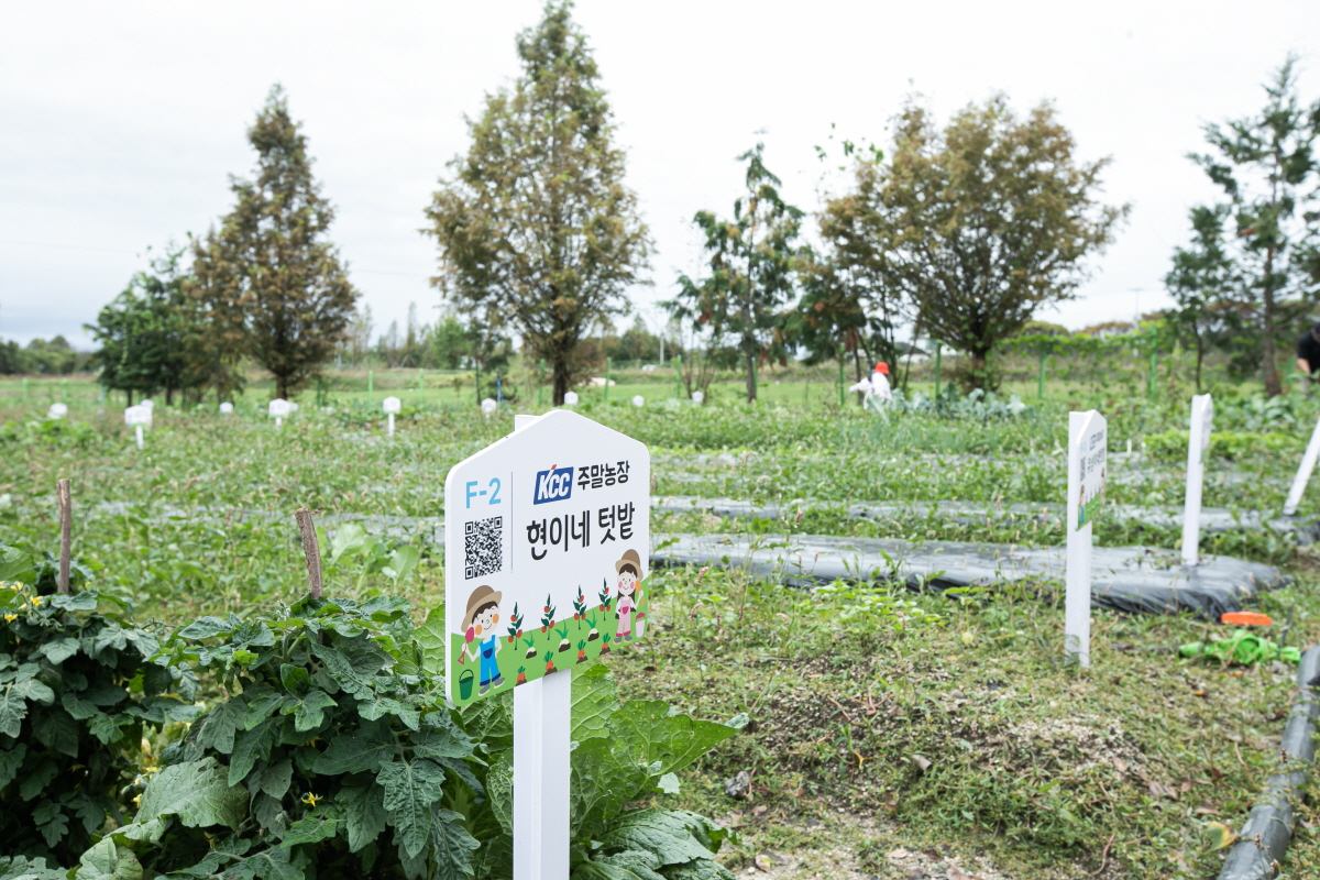 지난 9월, KCC 가족텃밭이 올해 처음 운영을 시작했다. 가족텃밭은 KCC 임직원들의 여가 활동을 위해 마련된 것으로 매년 4월부터 10월까지 운영된다. 텃밭 이용은 개인별로 신청할 수 있으며, 매년 4월경에 텃밭 이용자를 모집할 예정이다. 총무팀 게시판 등 사내 공지를 통해 신청 접수를 진행하며 추첨을 통해 텃밭 구역을 배분한다. 농장은 텃밭이 있는 운동장 휴장일인 매주 월요일을 제외하고 언제든지 방문 및 이용이 가능하다.