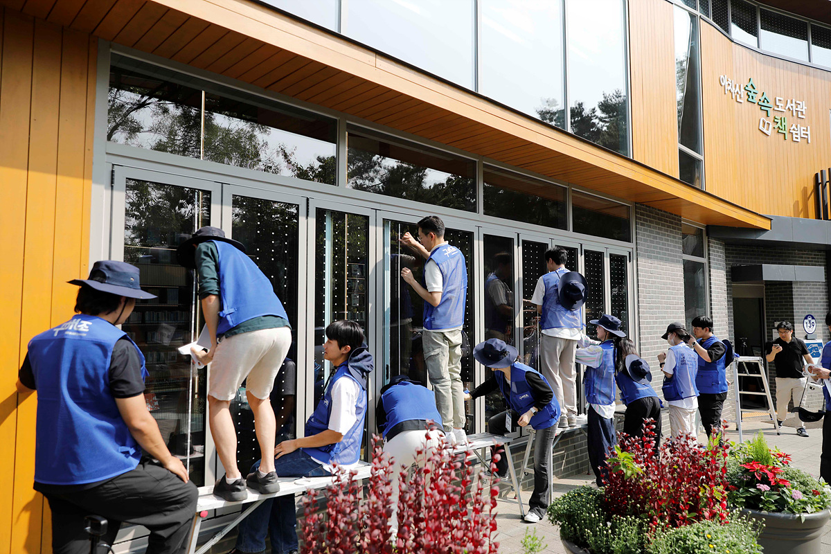 이날 첫 캠페인 활동에 참여한 KCC글라스 임직원과 참여자들은 아차산숲속도서관의 외부 유리창에 조류충돌방지스티커를 부착하고 도서관 입구에 이를 인증하는 현판을 설치했다. 이로써 아차산숲속도서관은 구해조(鳥) KCC글라스의 첫 번째 조류친화건축물이 됐다.