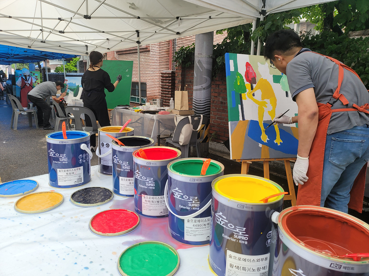 이번 공모전의 작품들은 ‘마을’과 ‘저층 주거지’에 대한 추억을 주제로, KCC가 지급한 ‘숲으로’ 페인트를 활용하여 그려졌다. 대부분의 참여 작가들이 캔버스에 페인트로 그림을 그리는 것은 처음이라 걱정했는데, 직접 그려보니 우려했던 것보다 그림을 그리기도 편하고 색감 발현이 좋았다며 긍정적인 반응을 보여줬다는 후문이다. 또 그림을 그리는 동안 현장에서 냄새가 나지 않아 좋았고, 마치 아크릴 물감과 같은 느낌이어서 놀랐다는 의견도 있었다고 한다.