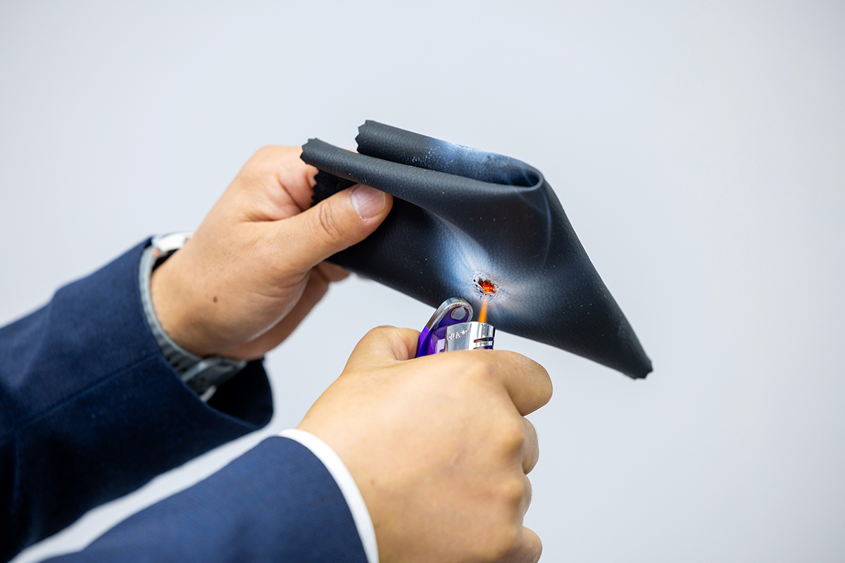 테슬라 차량에선 천연 가죽을 볼 수 없다. 테슬라 최고경영자 일론 머스크가 친환경 차량에 걸맞게 내부에도 친환경 원단을 쓰겠다고 선언한 덕분이다. ㈜비에스텍 공창배 대표는 일론 머스크의 선택이 스티브 잡스가 만든 아이폰처럼 시대를 바꾸는 계기가 될 것이라 생각했고, 친환경 소재인 실리콘으로 코팅한 가죽 원단 ‘실리텍스(SILITEX)’를 개발했다. 그리고 그 곁에는 KCC실리콘이 있었다.