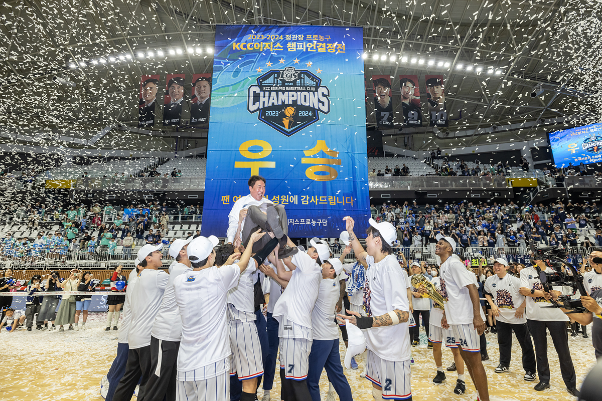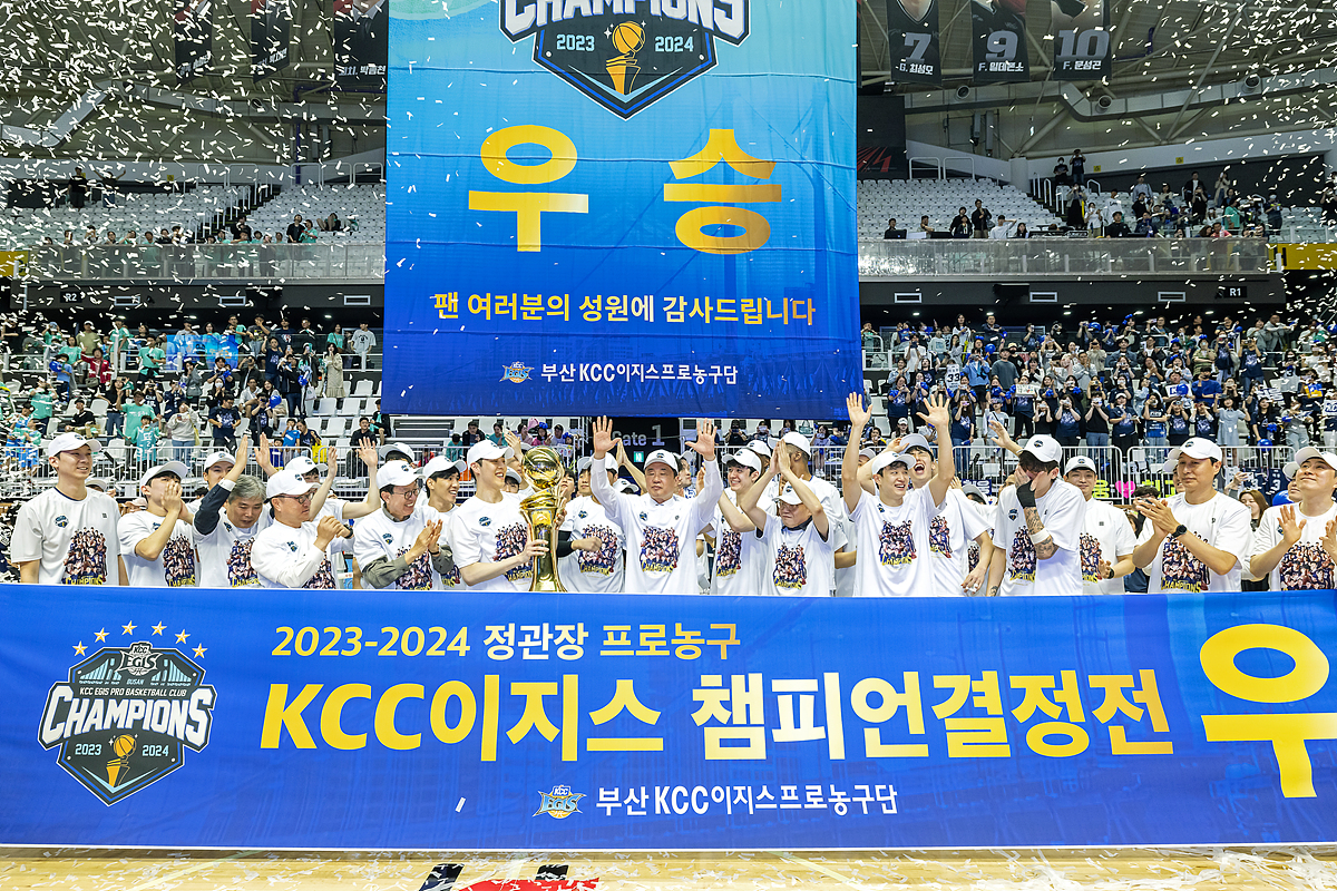 부산 KCC EGIS가 지난 5월 5일, 수원 KT 소닉붐 아레나에서 열린 2023-2024 정관장 프로농구 챔피언결정전 5차전에서 수원 KT를 88-70으로 꺾고 시리즈 전적 4승 1패로 우승을 차지했다. 이번 우승은 2010-2011시즌 이후 13시즌 만이자 통산 6번째 우승이다. 또한 KCC는 KBL 역사상 최초로 연고지를 이전한 첫 시즌에 우승을 차지한 팀이 되었다.