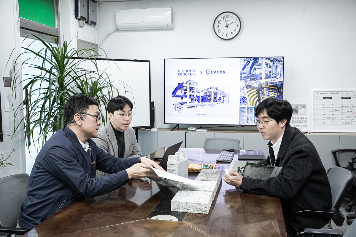 천보콘크리트 최호진 차장은 최근 동해프라우드스위첸 현장을 회상하며 “블랜딩 제품인 테트라블록 납품을 진행했는데 담당자분께서 색상 조합은 물론이고 시공성 등 현장의 피드백을 적극적으로 전해주신 덕분에 제품 개선에 많은 도움이 됐습니다”라며 “실제로 전해주신 의견을 반영하여 금형의 설계를 수정했습니다”라고 전했다.