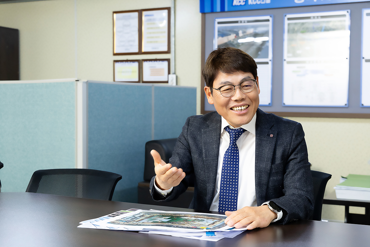 삼성전자 사내 현장인 평택 캠퍼스의 까다로운 관리 규정이 발목을 잡은 것이다. 특히 건설 초반 타워크레인 설치에 각별한 규제들이 많아 난항을 겪었다. “처음엔 어려움이 많았습니다. 그럼에도 KCC건설 현장 담당자님들이 열정적으로 규제에 대해 조율하고 설명해 주셨고, 덕분에 무사히 설치를 마칠 수 있었습니다”라고 말하는 정호개발 이정철 대표이사의 얼굴에서 KCC건설에 대한 신뢰와 고마움을 표하는 미소가 번졌다.