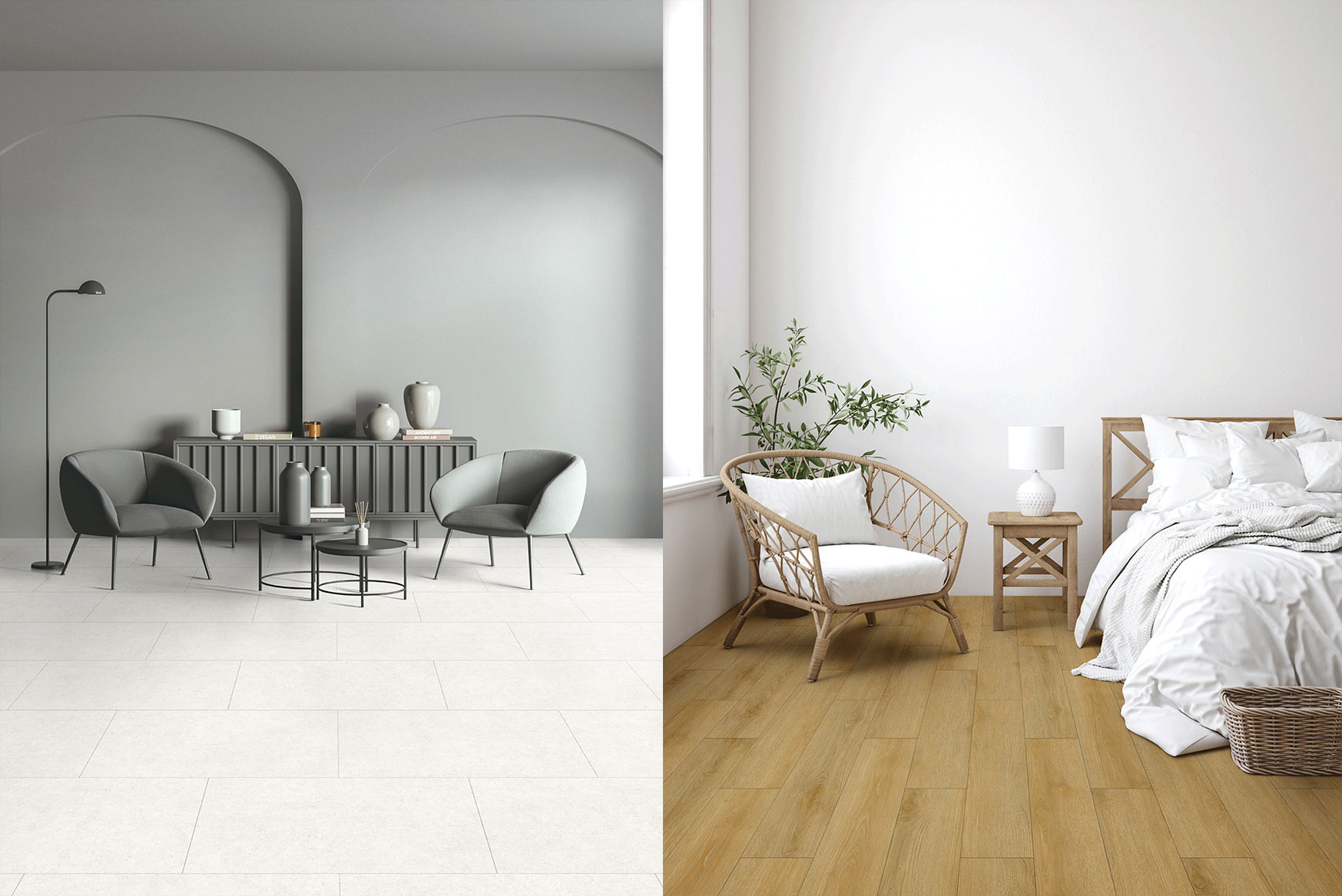주거 환경에서 자연의 감성을 느낄 수 있는 가장 합리적인 방법은 뭐가 있을까요. 식물을 들이거나 고즈넉한 숲 사진을 걸어 두는 것도 방법이지만, 우리가 발 딛는 바닥 전체를 ‘자연’스럽게 물들이는 게 가장 확실하겠죠. 그렇다고 비싼 대리석이나 원목 등을 시공하는 건 큰 부담이 텐데요. KCC 글라스의 인테리어 전문 브랜드 ‘홈씨씨 인테리어’가 이번에 출시한 프리미엄 강마루 제품 ‘숲 강마루 스톤’과 주거용 LVT 바닥재 ‘센스하우스’는 그러한 부담을 덜어내고, 자연의 감성을 집 안에 들이는 새로운 방법을 제안합니다.