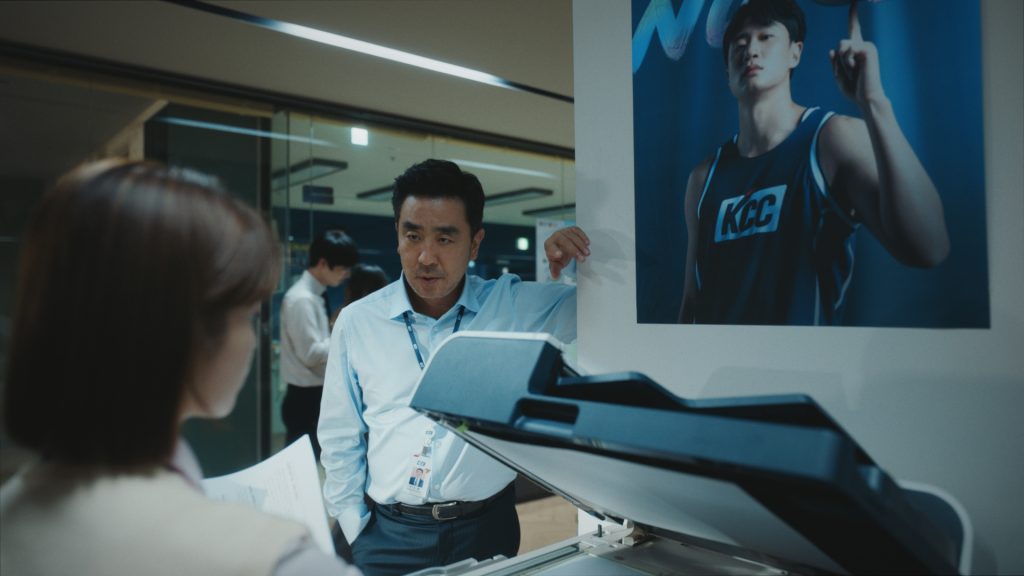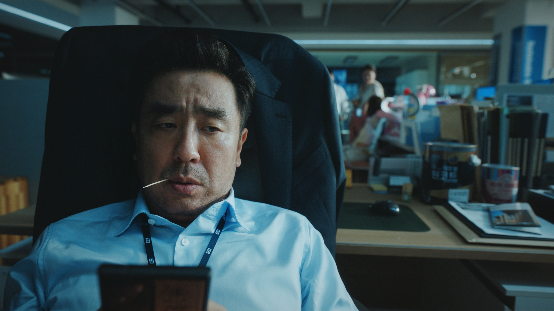 이어 우연히 자신의 뒷담화를 듣게 되는 류팀장의 마음은 ‘푸르게’, ‘푸르죽죽하게 멍들고’, ‘핑크빛으로 물든’ 사내연애 당사자들에게 합동 공격을 받기도 한다. 이쯤 되면 류승룡 팀장에게 안쓰러운 마음이 들 법도 하지만, 그도 일할 땐 경쟁심 강한 직장인이다. 회의 시간엔 ‘시커먼 속마음’을 드러내기도 한다.