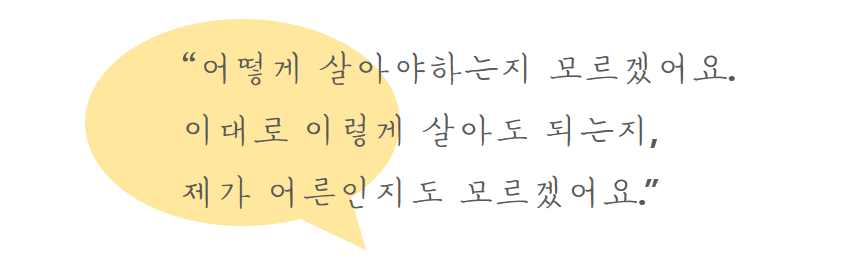 이 성인기, 사회에서 고립되지 않고, 사람들 속에서 나의 역할과 자리를 찾고, 나만의 특별한 사람, 혹은 사람들을 만나서 관계를 맺는 것. 아마 이 정도가 우리가 ‘어른’이라고 일컫는 관계가 아닐까 합니다.
