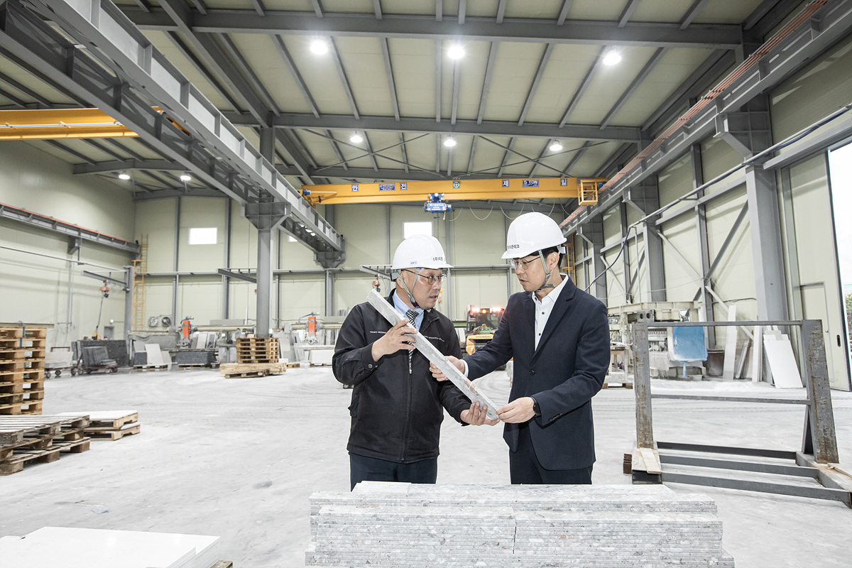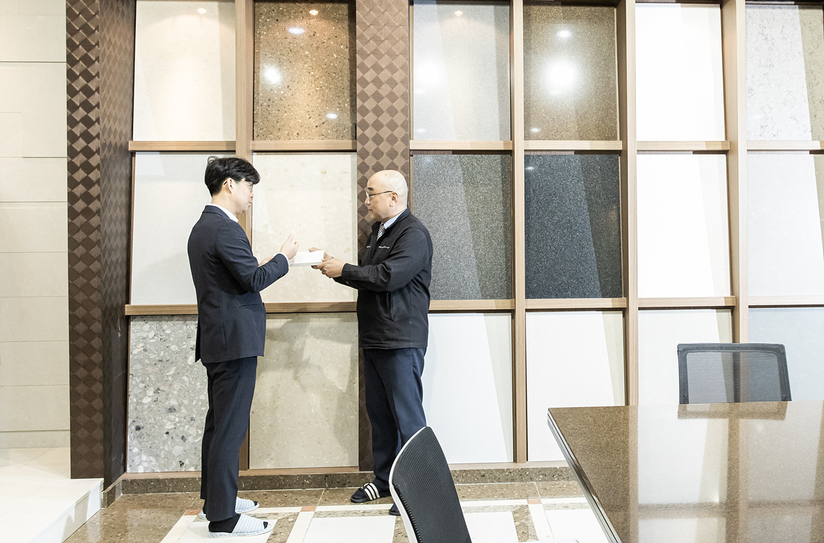 오늘 함께 자리한 KCC건설 건축부 윤도건 과장도 앞으로의 바람을 들려줬다. “건설경기의 침체로 저희 KCC건설뿐 아니라 모든 협력업체들도 함께 힘든 시기를 보냈습니다. 지금 건설 중인 부산 엘마르 스위첸 현장을 비롯해 현재 KCC건설에서 분양하는 주거시설에 대부분 미존테크의 인조석이나 대리석이 들어가는데요, 앞으로도 계속해서 좋은 협력관계를 유지하여 서로 발전하였으면 합니다.”