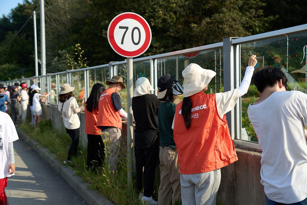 봉사 참가자들은 약 3시간 동안 투명 방음벽 364m 구간에 조류충돌방지 스티커를 부착하는 작업을 진행했다. 이번에 봉사활동을 진행한 구간은 자연활동 공유 플랫폼인 네이처링을 통해 지난 2018년 이후 180건 이상의 야생조류 충돌 피해 사례가 관찰된 방음벽이다. 당초 수도권 일대에서 진행하는 것을 고려하기도 했으나, 수도권 지역은 접근성이 좋아 이미 조치를 취한 경우가 많았다. 이에 피해 사례가 많이 기록되었으며 구간이 넓고, 1단 방음벽으로 일반 봉사자들이 시공하기 안전한 부내교차로 일대를 봉사 구간으로 선정했다.