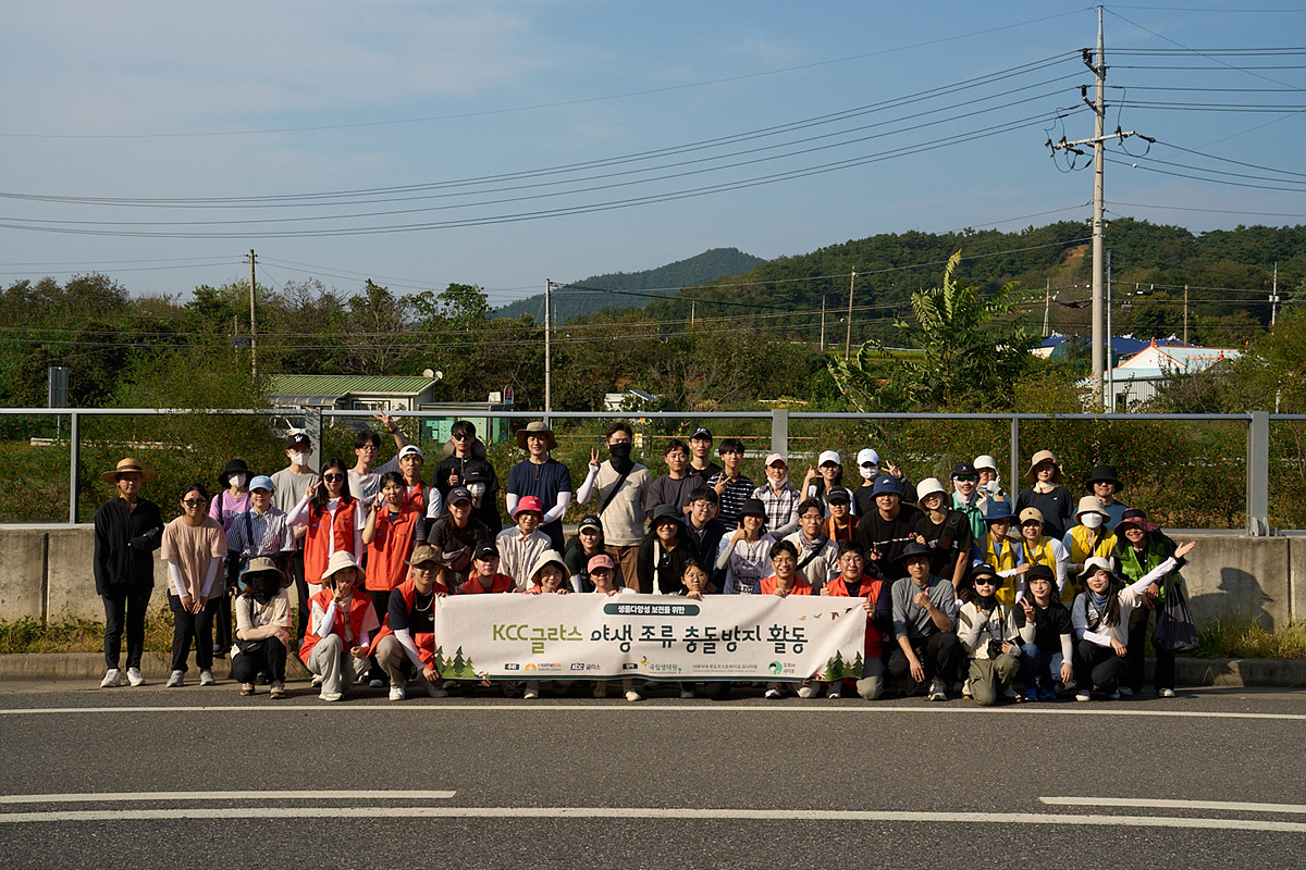 KCC글라스 임직원들로 구성된 ‘홈씨씨 챌린저 봉사단’이 야생조류의 투명 방음벽 충돌 사고를 막기 위한 ‘조류충돌방지 스티커’ 부착 활동을 진행했다. 지난 9월 9일 충남 서천군 부내교차로 일대 투명 방음벽을 대상으로 진행된 이번 활동에는 홈씨씨 챌린저 봉사단 외에도 구독자 44만 명의 조류 전문 유튜버 ‘새덕후’ 및 구독자를 비롯해 이화여대 소모임 ‘윈도우스트라이크 모니터링’, 국립생태원 등에서 모인 약 60여 명의 인원이 함께했다.