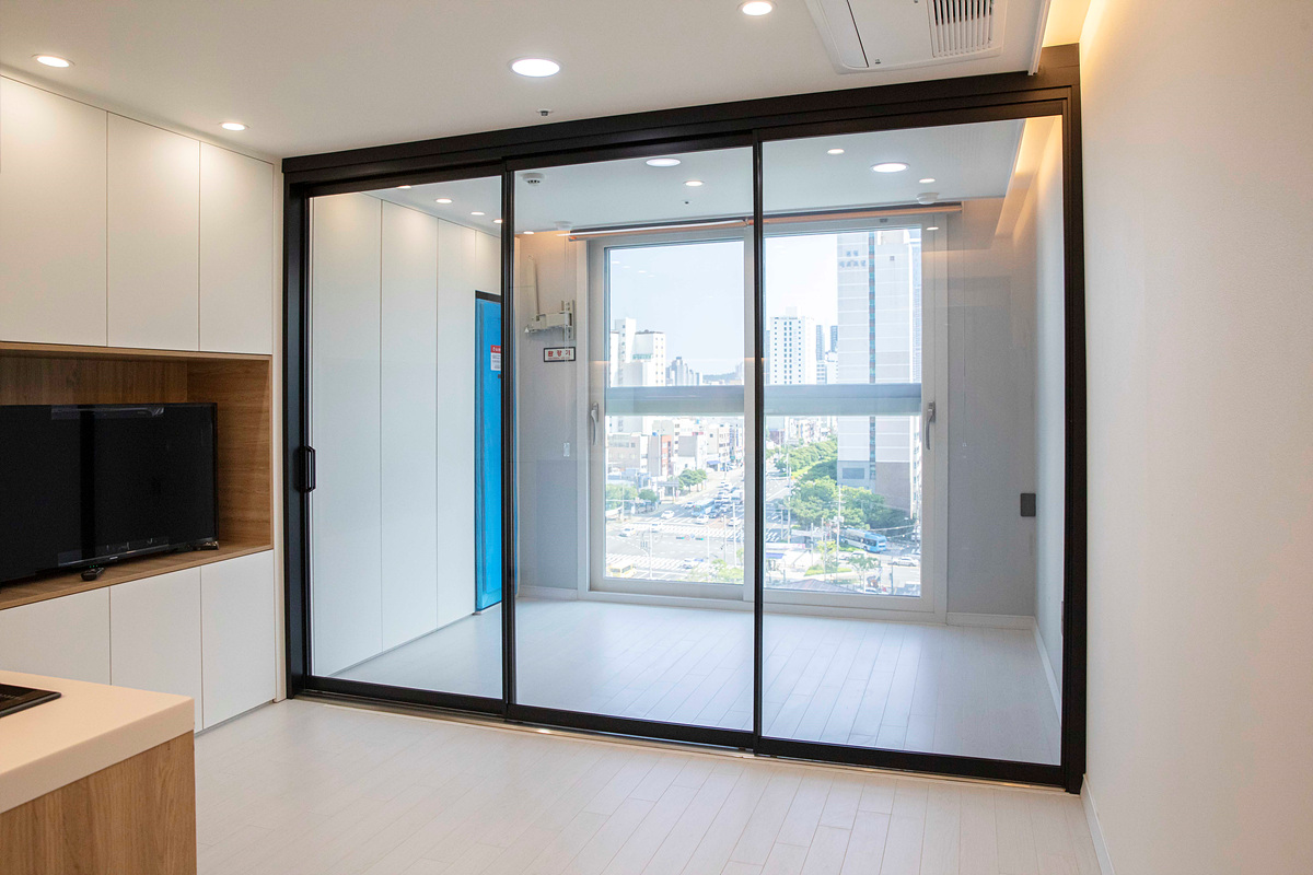 A: 창호든 중문이든 기능적으로 화려한 것보다는 오래 사용해도 문제가 생기지 않는 튼튼하고 안전한 제품이 최고죠. 그래서 한국창호는 중문의 경우 홈씨씨 인테리어의 ‘3연동 초슬림 중문’을 사용하고 있어요. 디자인이 요즘 트렌드에 맞게 얇고 심플한 데다 내구성과 단열성도 모두 우수하더라고요. 특히 시공하는 저희 입장에서는 제품 불량이 안 나오는 게 중요한데, 홈씨씨 인테리어의 이 제품은 불량률이 매우 낮아서 그동안 큰 문제 없이 많은 곳에 채택해서 시공하고 있습니다.