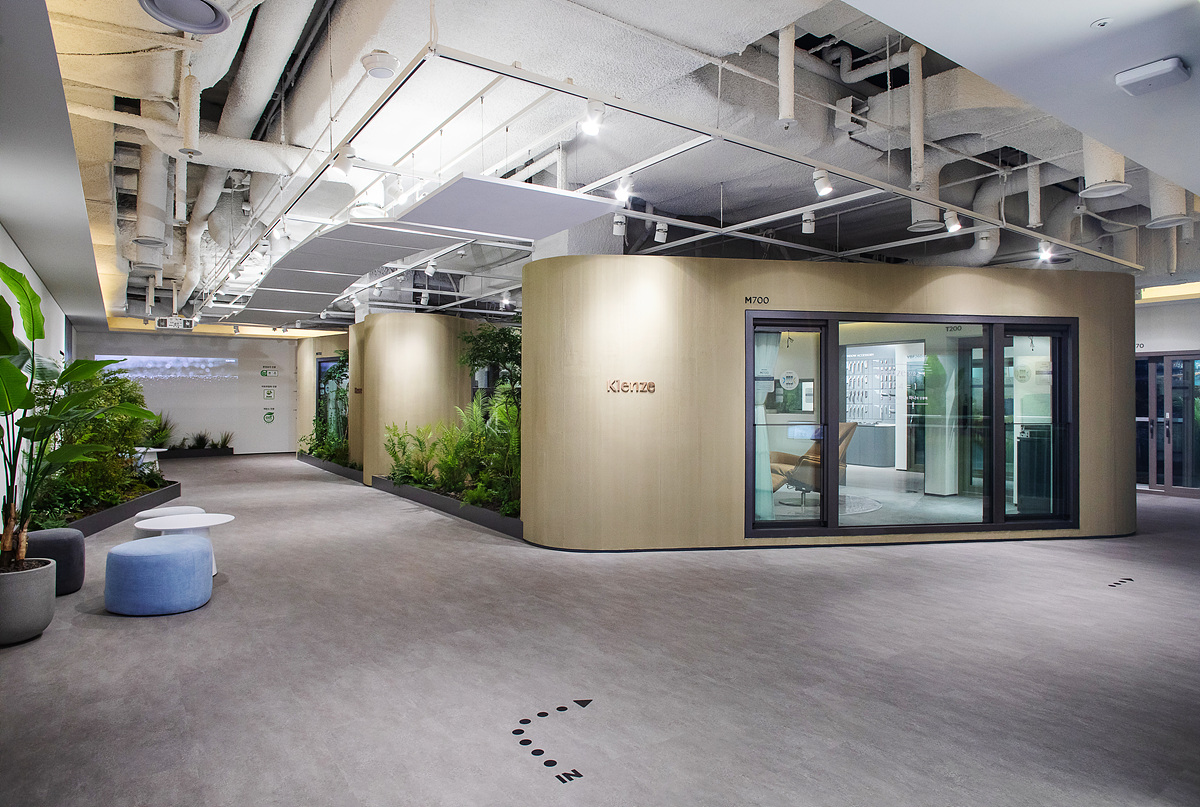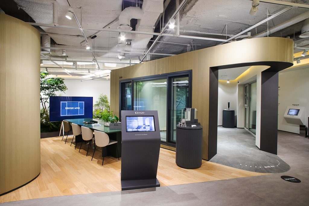 ‘Klenze Zone’에 전시된 하이엔드 창호 Klenze는 알루미늄과 PVC 소재의 장점인 단열성과 고급스러움을 결합한 하이브리드 창호로 고단열 및 고기밀 구조로 최고의 성능을 자랑하며, 슬림한 프로파일과 유리 난간대로 자연채광 및 전망을 확보한 와이드 뷰(wide view)로 설계한 것이 큰 특징이다. 더불어 Klenze가 다양한 라이프 스타일 및 인테리어 컨셉에 따라 실제 주거 환경으로 구현되어 고객이 그들이 원하는 공간 모습을 상상하고 이해하는데 용이하도록 구성되어 있다.