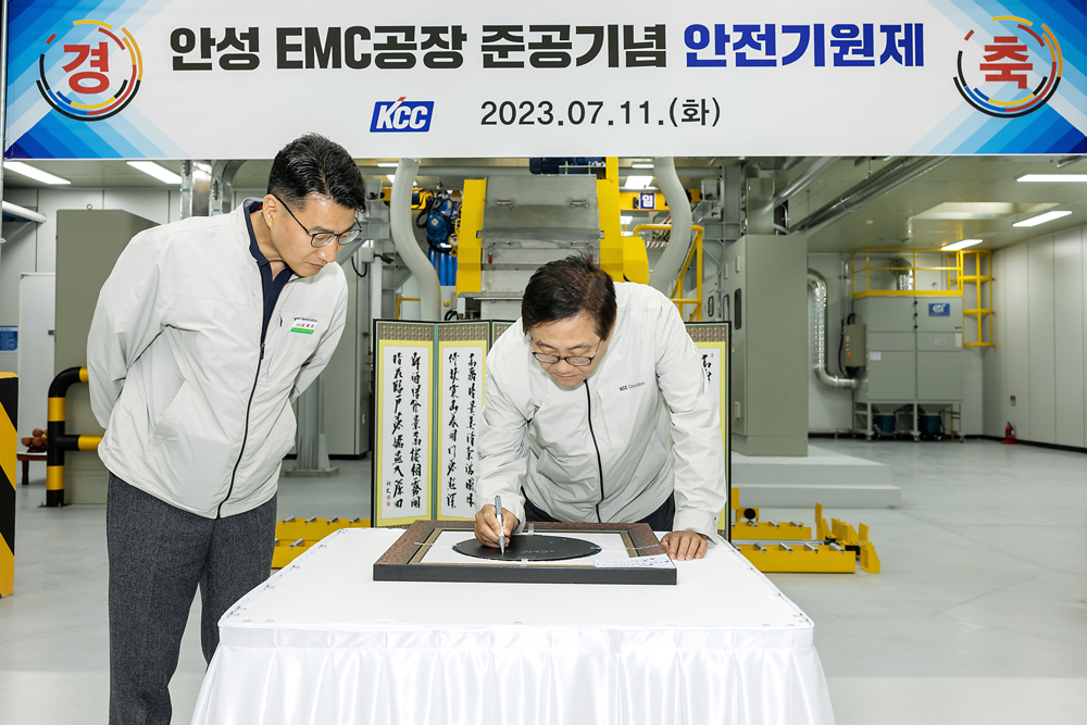 지난 11일, KCC는 경기도 안성시 서운면에 위치한 KCC안성공장에 EMC 생산라인을 신설하고 무사고 무재해를 기원하는 안전기원제를 가졌다고 밝혔다. 이날 행사에는 KCC 정몽진 회장, 정재훈 사장을 비롯한 협력업체 및 관계자 50여명이 참석했으며, 반도체 웨이퍼에 사인 세리머니 행사도 함께 진행됐다.
