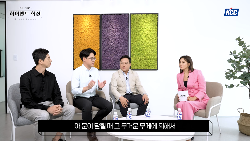 지난 가을 ‘김희선의 Klenze for U’를 통해 일일 DJ가 되어 KCC 임직원들의 다양한 사연을 소개했던 배우 김희선. 이번엔 MC가 되어 기술-디자인-마케팅 담당자들을 만나 클렌체에 대해 보다 더 깊숙이 알아보기로 했다. 건재기술영업팀 이승진 프로, 디자인1팀 최정환 책임, 창호수주팀 백성욱 책임, 그리고 브랜드를 대표하는 모델 김희선까지, ‘중요한 관계자들’이 다 모인 가운데 화기애애한 토크쇼가 진행됐다.