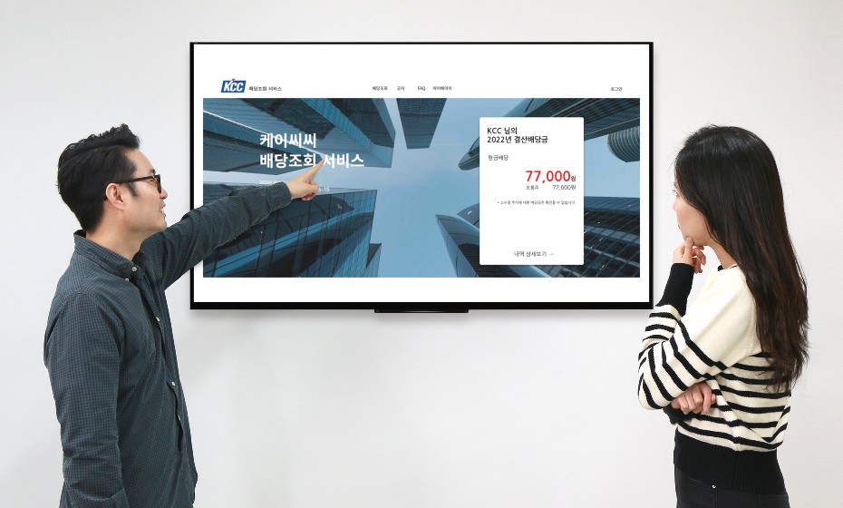 한편, 온라인 배당 조회 서비스는 KCC 뿐만 아니라 KCC 글라스, KCC 건설 등 그룹사도 도입 예정이다.