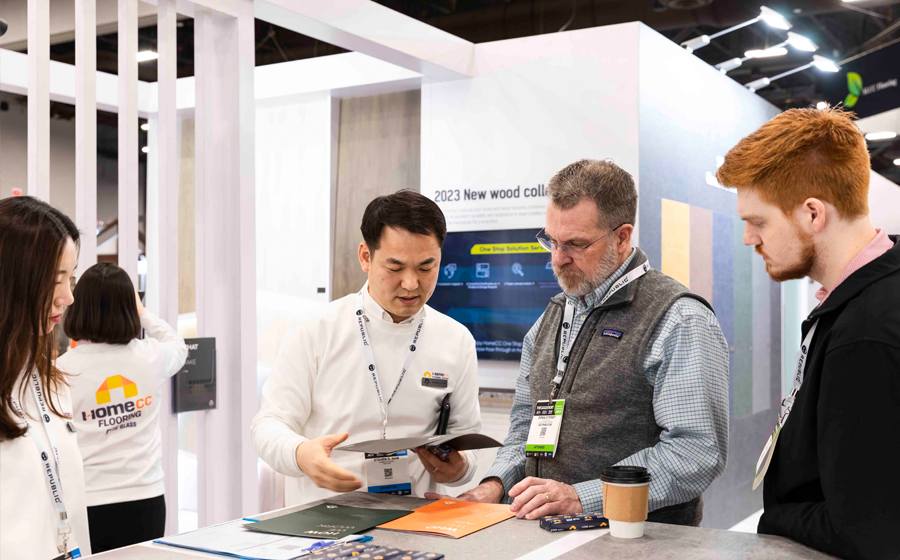 작년에 이어 올해 두 번째로 참가한 홈씨씨 인테리어는 이번 전시를 통해 최근 북미 바닥재 시장에서 수요가 늘고 있는 ‘LVT(Luxury Vinyl Tile, 럭셔리비닐타일)’ 제품 150여종을 전시하고 고객의 니즈에 맞춰 상담, 디자인, 생산 등 모든 과정을 한 번에 제공하는 ‘원스톱 솔루션’을 소개해 많은 관람객들의 호평을 받았다.
