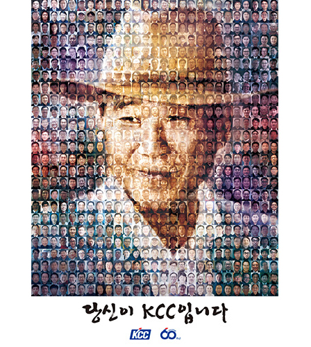 60주년을 기념하며 제작한 인쇄 광고의 핵심 메시지는 ‘맡은 자리의 주인이 되자’라는 사시로부터 출발했다. KCC 임직원들의 사진을 모자이크 기법으로 모아 생전의 정상영 명예회장의 모습을 형상화했다. “당신이 KCC입니다”라는 중의적인 말의 발화자는 맡은 자리의 책임감을 강조했던 명예회장이기도, 임직원 모두이기도 하다. KCC는 하나이자 우리 모두의 회사라는 메시지가 담겨 있다.
