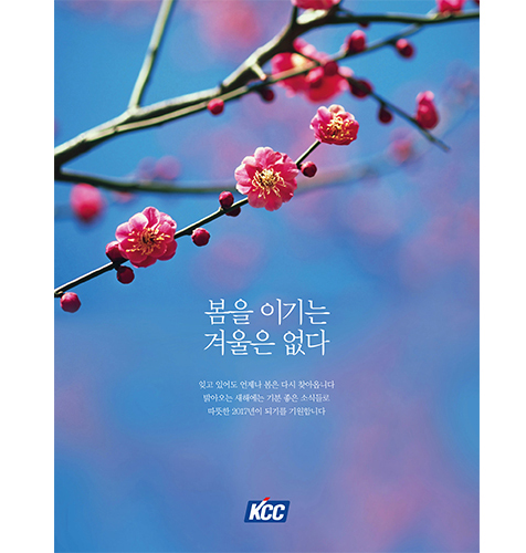 2017년 신년 인쇄 광고는 사회, 경제적으로 어려운 시간을 보내고 있던 대한민국, 그리고 국민들에게 대한민국을 대표하는 기업으로서 희망을 주는 메시지를 전달했다. 광고 카피 속 ‘겨울’과 ‘봄’은 계절의 순환을 뜻하기도 하지만 각각 우리가 직면한 현재의 어려운 상황, 그리고 밝은 내일을 상징한다. 故 정상영 명예회장은 기업이 기업 활동이라는 본연의 역할과 함께 국민들에게 미래에 대한 희망을 심어주는 사회적 책임에 대해서도 강조해왔다.