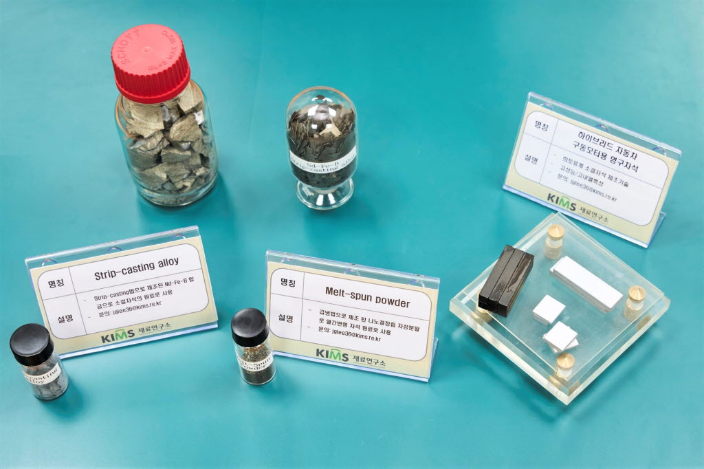 “그렇다고 해서 무작정 네오디뮴 함량을 낮추고 세륨 함량을 높일 순 없습니다. 기존 방식대로 자석을 만들면 세륨이 응집된 비자성 입자가 형성되고, 그만큼 자력의 세기가 낮아지기 때문이죠. 그래서 저희는 비자성 입자 형성을 막기 위해 기존의 자석 제조 공정 대신 매우 빠른 냉각속도를 적용해 비자성 입자 형성을 억제하는 멜트스핀법과 재료에 강한 압력을 가해 자력의 방향을 한쪽으로 모으는 열간변형법을 개발, 적용했습니다.”