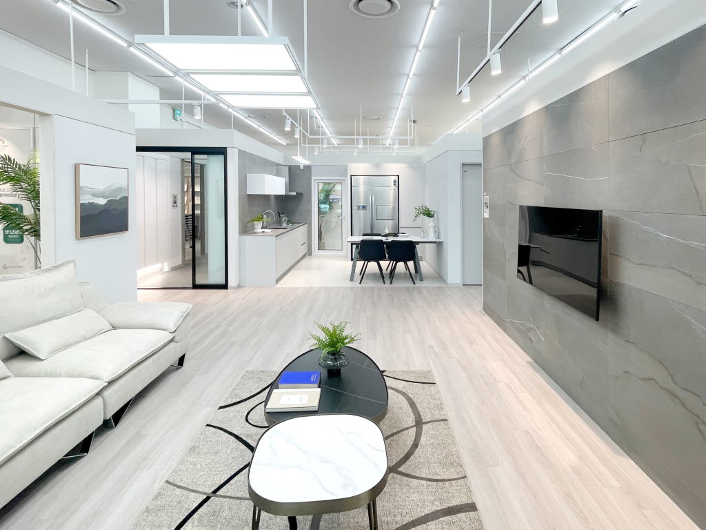 리모델링 후 전체 분위기를 상상하기 어려웠던 기존의 쇼룸과 달리 고객들이 실제로 거주하는 집과 유사한 구조에 연출된 홈씨씨 인테리어를 통해 공간 이해와 리모델링에 대한 기대감을 자극하고 있다.