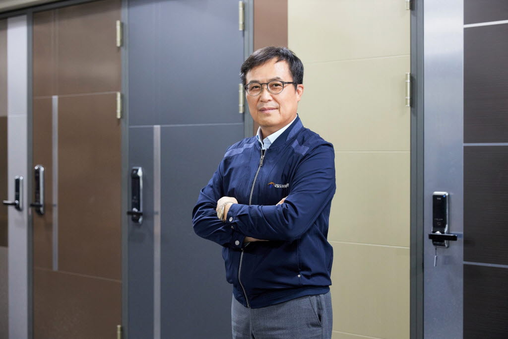 “방화문을 뜯어서 내부를 살펴보면 그 차이를 확실히 알 수 있습니다. 일반적인 방화문은 외부 프레임 안쪽에 철로 만든 보강대를 하나 정도 설치합니다. 간혹 아예 보강대가 없는 방화문도 있죠. 반면 우리 회사는 문 크기에 따라 보강대를 2~3개 덧댑니다. 그만큼 방화문의 내구성과 안전성이 높고, 오랫동안 사용해도 다른 제품 대비 변형이 적습니다.”