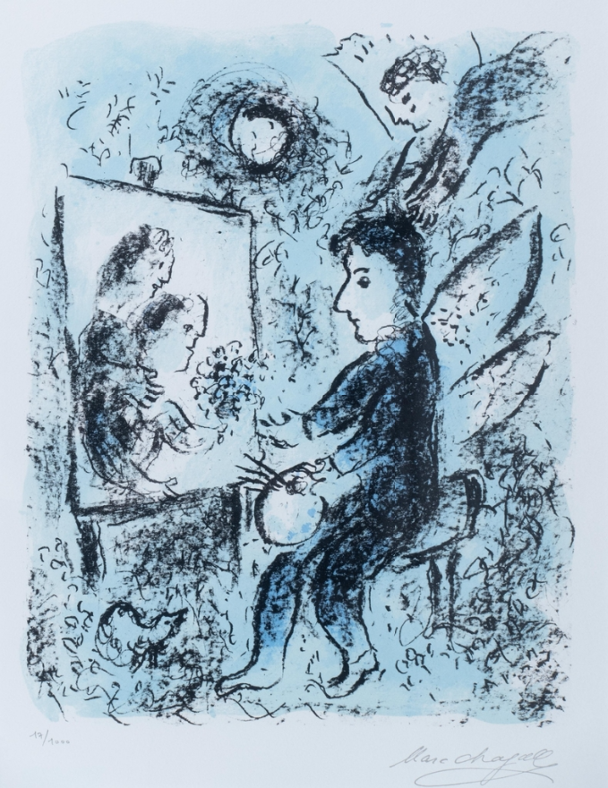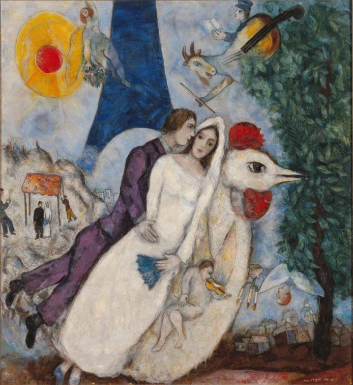 샤갈의 작품세계는 몽환적이다. 말간 표정의 암소, 지붕에서 연주하는 바이올리니스트가 꿈속 장면처럼 자연스럽게 어우러진다. 샤갈이 일평생 다룬 주제는 ‘영원한 사랑’이었다. 동화 같은 풍경 속에 등장하는 인간, 동물, 특히 연인들은 자유롭게 하늘을 날아다니는데, 샤갈 특유의 강렬한 색채와 만나 독창적인 예술세계를 이룬다.