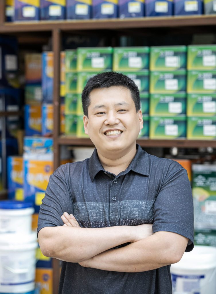 양정목 대표 안녕하세요. 한진도료상사 양정목 대표입니다. 건축용 도료를 메인으로 자동차와 공업용 도료를 일부 취급하고 있습니다. 한진도료상사는 1980년에 아버지께서 개업하여 40년 이상 이어 오고 있는 페인트 업체입니다. 저는 2014년부터 합류해 2021년 기준 서울시 KCC 건축용도료 5위권 이내 업체로 자리 잡기까지 내실 있는 경영과 성장을 위해 대를 이어 노력하고 있습니다.