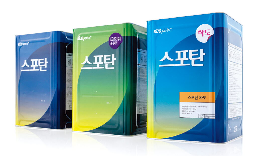 KCC 방수 도료는 도막 강도가 뛰어나 균열에 대한 견딤성이 우수하며, 접착력이 뛰어나 장기간 수분과 습기가 침입하지 못하도록 방수 성능을 유지한다. 방수재의 역할을 하며 외부 환경에 노출되는 옥상 방수시공에 주로 사용되는 KCC 제품으로는 ‘스포탄’이 있다.