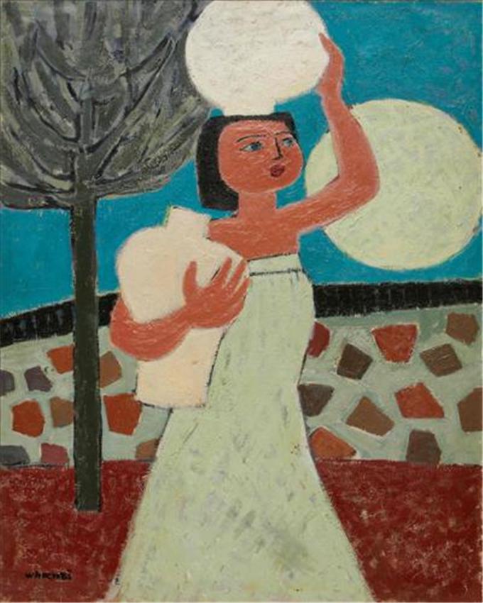 1963년작 <운월>은 전매특허나 다름없는 블루톤에 달·구름·배 등 한국적 모티브가 응축돼있어 ‘유화물감으로 그린 한국화’라는 평을 받았다. 1950년작 <항아리를 인 여인>은 <여인의 달과 항아리>라는 제목으로도 전해진다. 김환기의 대표작 중 하나인 ‘달항아리’ 시리즈에 등장하는 여인은 바로 아내이자 뮤즈이며 예술적 동지였던 김향안을 모델로 했다. 둥근 얼굴에 눈이 크고 콧날이 오똑한 단발 여인은 김향안의 실제 모습과 많이 닮았다고 한다. 김향안은 천재시인 이상(1910∼1937)의 아내였으나, 이상이 요절한 뒤 김환기의 적극적인 구애로 결혼에 이르렀다. 미술시장의 중심인 파리에서 활동하고자 한 김환기를 위해 먼저 프랑스어를 공부하고, 작품목록을 들고 화랑을 돌며 파리생활의 터를 마련한 것도 김향안이었다. 김환기와 사별 후 30년을 더 산 김향안은 남편의 예술세계를 정리하며 일생을 보냈다. 회고전을 추진하고 파리·뉴욕·서울에 환기재단을 연달아 설립했으며 환기미술관도 세웠다.