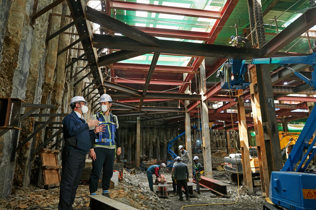 도심 현장의 어려운 점은 또 있다. 바로 기초단계 공정인 만큼 토목공사와 병행해야 하는데, 공간이 좁아서 구역을 나누거나 작업 순서를 정해 진행해야 한다. 이렇다 보니 해당 협력업체들끼리의 대화와 조율이 중요한데, 다행히 KCC건설 담당자들이 적극적으로 중간 역할을 해주어 순조롭게 진행되고 있다고 한다.