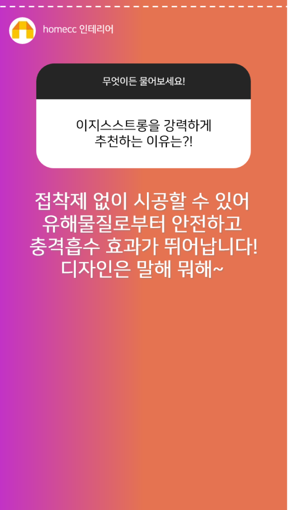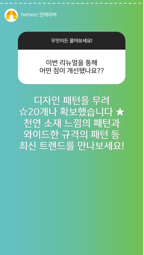 문: 마지막으로 이번 바닥재 라인업✨을 강화한 소감과 앞으로의 포부를 밝혀주세요!
