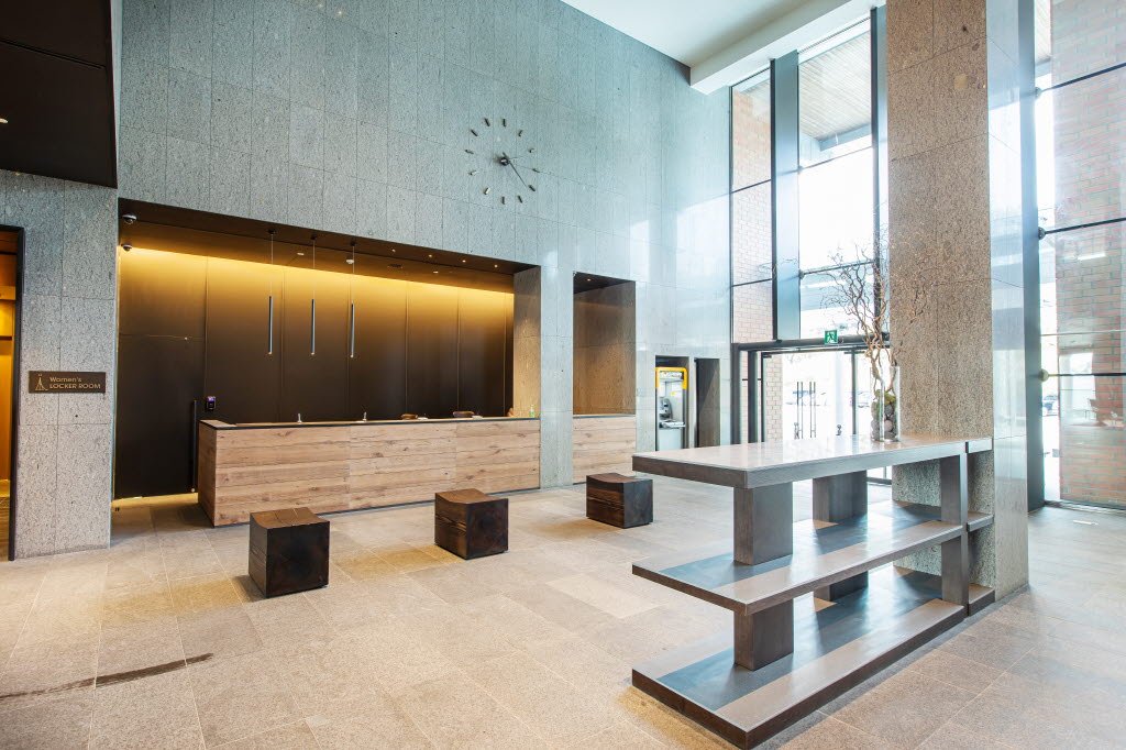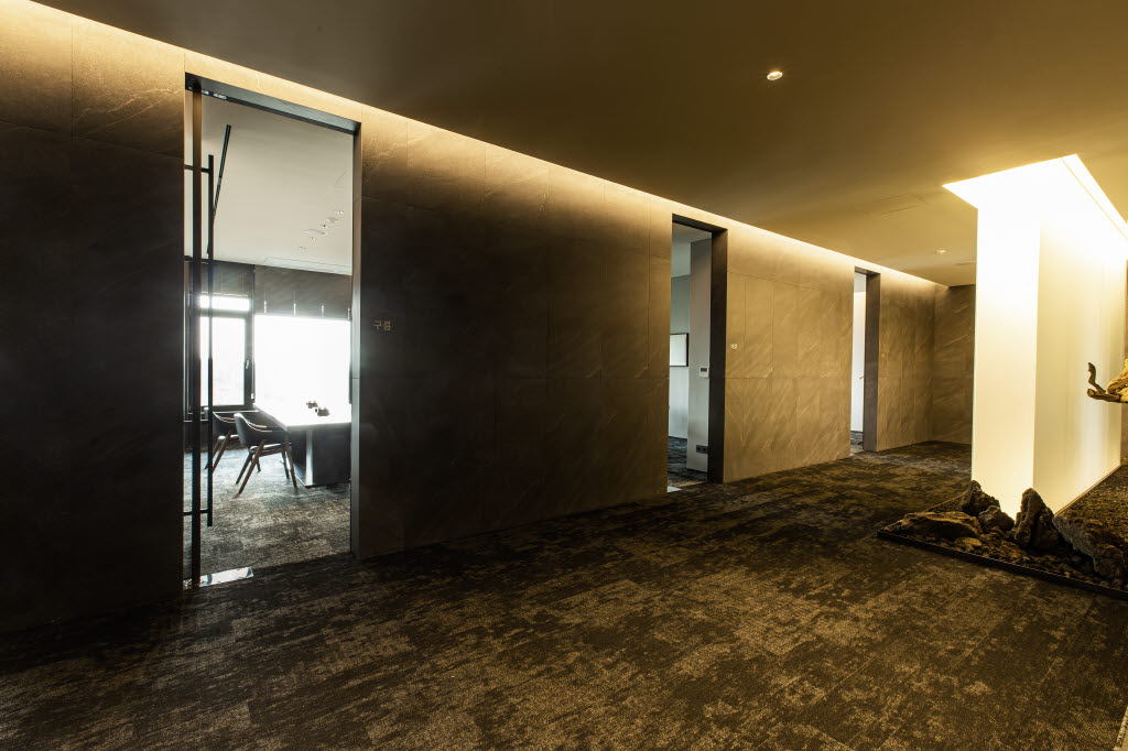 한편 이번 리모델링은 ‘FROM THE BASIC’라는 콘셉트 아래 돌과 금속, 모래, 나무 등 다양한 원재료들의 질감, 컬러 등을 활용해 자연으로부터 가치를 창조하는 이미지를 부각하고 짙은 브라운을 주조색으로 하여 전체적으로 진중하고 격조 있는 분위기를 연출했다. 특히 창호와 주요 자재들을 KCC글라스 홈씨씨 인테리어 제품으로 사용한 것이 특징이다.