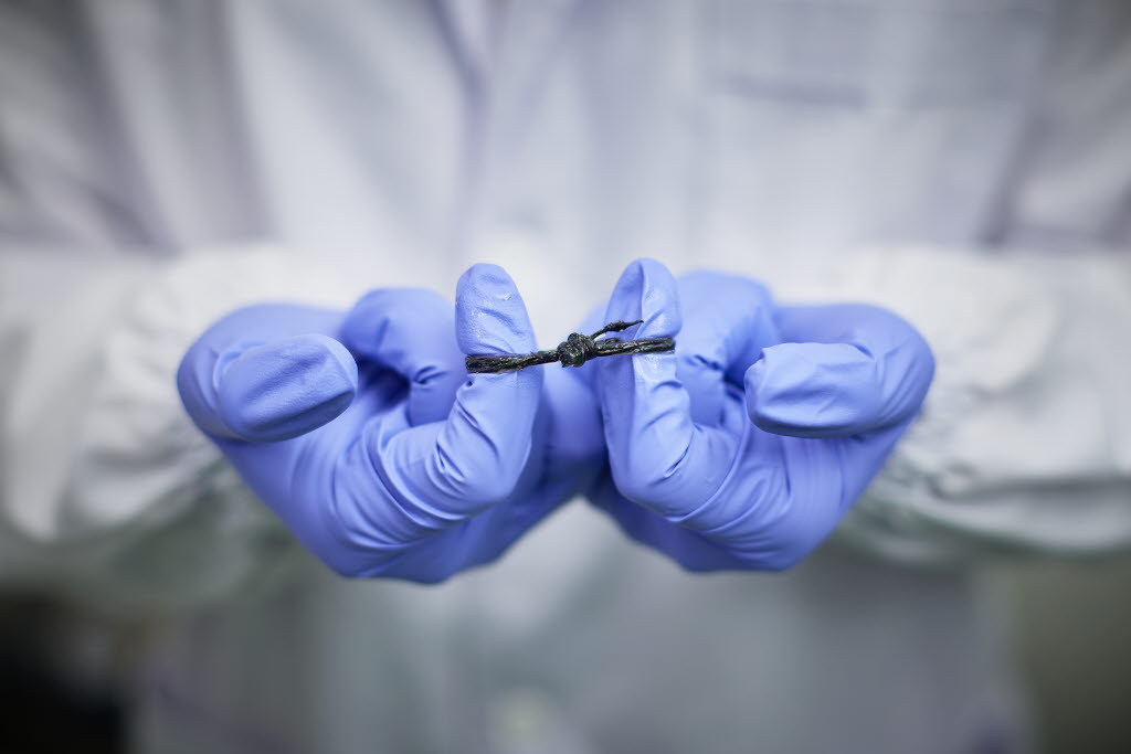 탄소나노튜브는 탄소 원자 6개로 이루어진 육각형들이 하나로 연결되어 튜브 모양을 이루는 물질로, 지구상에 존재하는 여느 소재와 달리 가볍고 튼튼하면서도 전기 전도성이 매우 우수한 것이 특징이다. 머리카락 굵기의 1/20,000 정도의 지름을 가진 탄소나노튜브 수억 개를 하나로 엮으면 3mm 내외의 가느다란 실이 탄생하는데, 이것이 바로 김태훈 선임연구원이 주로 연구하는 소재인 탄소나노튜브 섬유다.