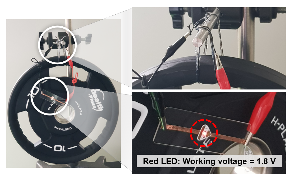“먼저 탄소나노튜브 섬유에 다른 물질이 잘 달라붙도록 표면처리를 한 다음, 전기를 많이 저장할 수 있는 다공성 소재를 붙여서 일정 정도로 성장시킵니다. 그 후 열을 가해서 다공성 소재를 탄화시키면 일종의 활성탄이 탄소나노튜브 섬유에 단단하게 자리 잡는데요. 이렇게 만들어진 섬유를 마치 옷감처럼 직조해서 순간적으로 높은 출력의 전기를 충‧방전시킬 수 있는 고강도 섬유형 슈퍼 커패시터(Super Capacitor)를 제작한 것이 이번 발표의 핵심이라고 할 수 있습니다.”
