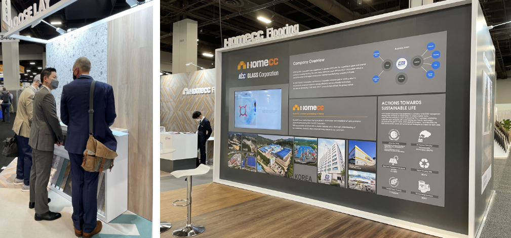KCC글라스 인테리어 전문 브랜드 홈씨씨가 2월 1~3일 미국 라스베이거스에서 열린 국제 바닥재 전시회 ‘TISE 2022(The International Surface Event 2022)’에 참가했다. TISE는 30년 이상을 이어온 북미 최대 규모의 바닥재 전시회다. 바닥재 제품(LVT, Sheet, 마루, 카펫), 기계 장비, 인테리어 장식품 등이 전시되며 올해 전시회에는 78개국 500여 개 업체가 참가해 최신 바닥재 기술과 제품을 선보였다.