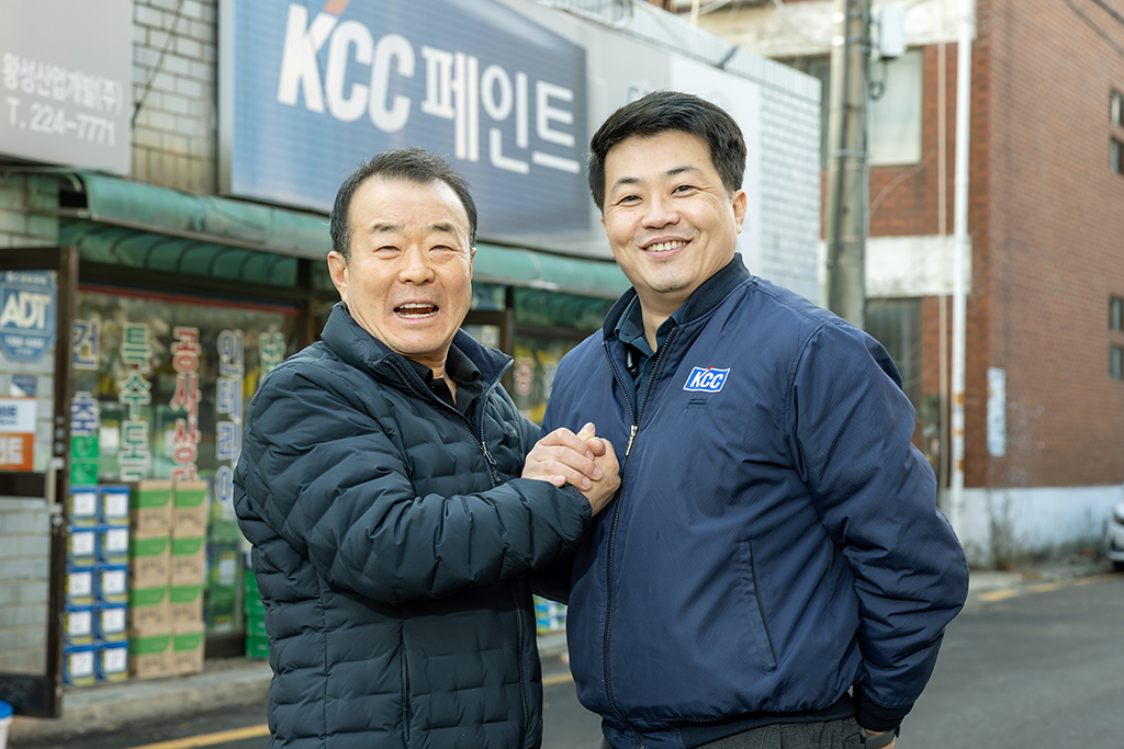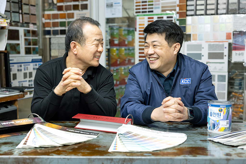 22년간 KCC 수원영업소와 파트너로 건축도료 외길만 걸어온 왕성산업개발㈜ 노재복 대표. 오랜 인연만큼 돈독한 협력관계를 맺으며 상생의 탑을 단단히 쌓아 왔다. 서로에 대한 믿음과 정이 두텁기 때문일까. 인터뷰 내내 훈훈함과 웃음이 끊이지 않았다. 서로에게 최고의 파트너라고 자부하는 노재복 대표와 KCC 수원영업소 도료영업팀 강정규 과장의 상생 파트너쉽에 대해 들어보았다.