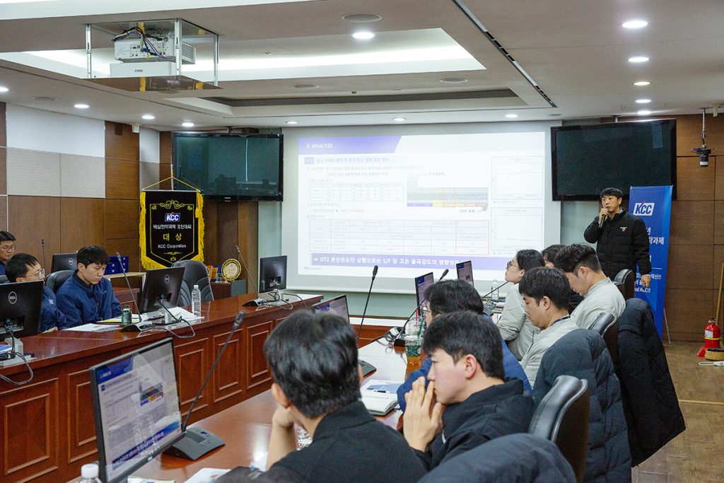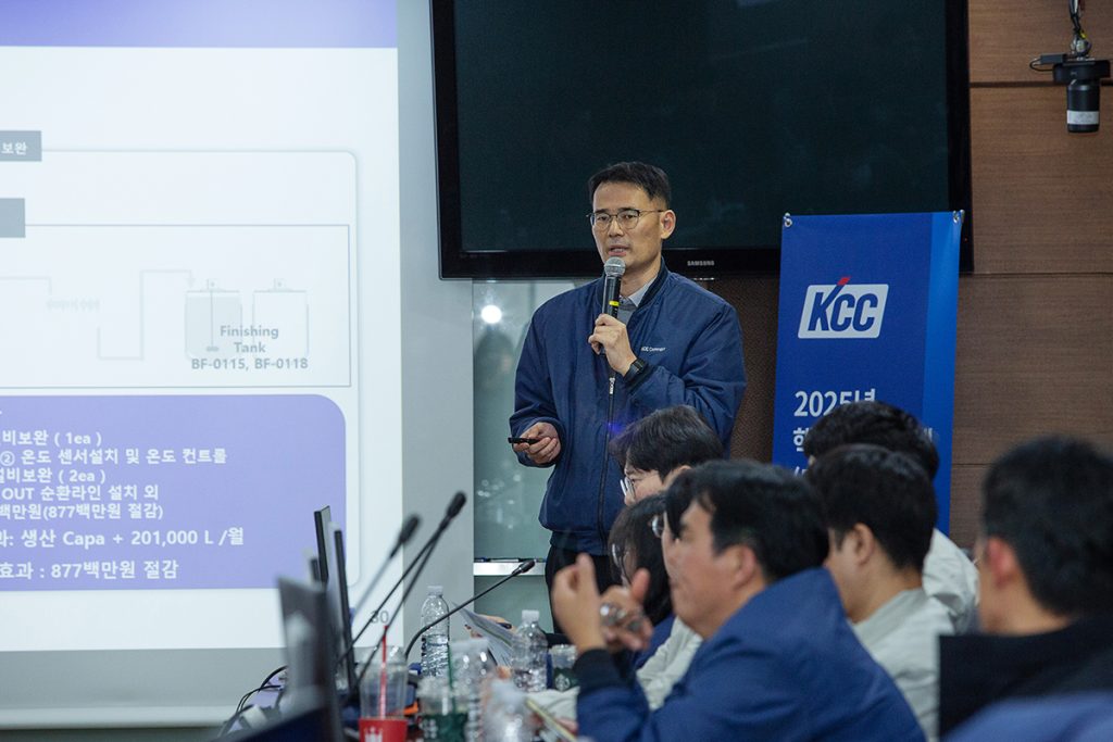 KCC는 2026년 이후에는 비용 절감과 품질 안정화를 중심에 두면서, 데이터 활용·AI 기반의 개선 활동을 더욱 체계화할 계획이다. 동시에 사업장 간 우수사례가 보다 쉽게 공유되고, 부서 간 협업이 일상적으로 이루어지는 구조를 마련해 지속적인 개선 활동이 안정적으로 이어질 수 있도록 운영 방향을 확대해 나갈 예정이다. 구성원이 직접 머리를 맞대고 더 나은 작업 환경을 만들어가는 노력이 모여, KCC는 오늘도 한 걸음 씩 더 나아가는 중이다.