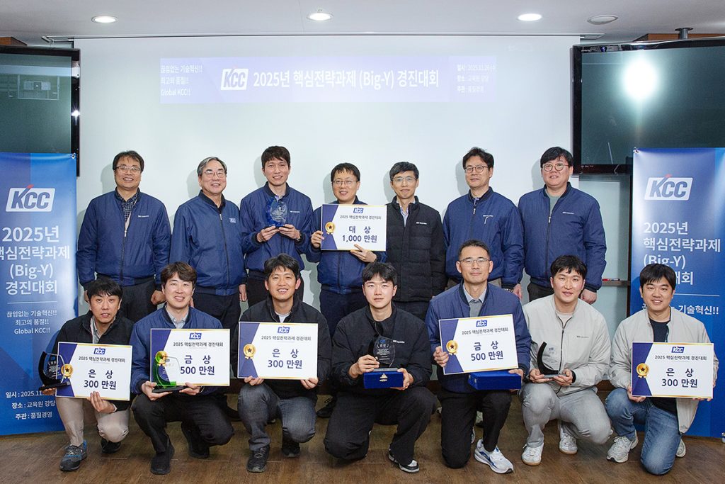 2025년 핵심전략과제(Big-Y) 경진대회가 지난 11월 26일 열정 가득한 분위기 가운데 열렸다. 올해로 16회째 맞이한 KCC 핵심전략과제 경진대회는 ▲제품군별 성장전략을 기반으로 SCM(공급망 관리) 전 부문이 협업 과제를 활성화하고 ▲매출·수익 목표 달성과 고질적 품질 이슈 개선 활동을 통해 수익 창출과 고객만족을 실현하며 ▲우수사례를 사내 확산·전개해 지속적인 개선활동 문화를 정착시키고자 매년 개최되고 있다. KCC 구성원이 경진대회에 직접 개선 활동에 참여함으로써 비용·품질에 대한 감각이 자연스레 강화되고 공유한 우수사례가 조직 전반으로 확산되는 효과를 거두고 있다.