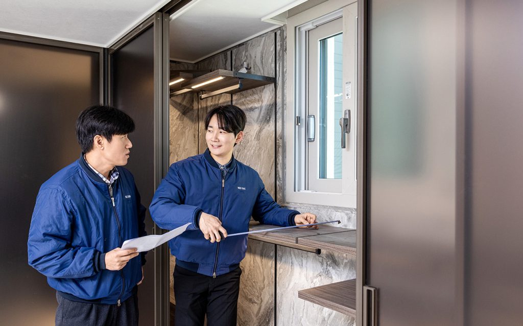 입주를 앞두고 마무리 작업에 들어간 대전 에테르 스위첸. 지난 11월에는 기대와 설렘으로 가득한 예비 입주자들이 사전 점검을 진행했다. 구성원들의 진심과 노고가 담긴 현장을 둘러보는 입주자들의 표정은 더없이 밝았고, 특히 고급스럽게 단장한 외관 디자인에 호평이 이어졌다. 실제 이번 현장은 공통적으로 적용하는 표준 사양이 아닌, 고층 주거 단지에 걸맞은 수직적 디자인을 강조하는 등 외관 디자인에 많은 신경을 썼다. 설계 단계부터 관련 부서, 협력사와 긴밀하게 협업고, 자재 선정부터 시공 디테일, 검측 기준 등 시공 과정 역시 다른 현장보다 한층 까다롭게 진행했다. 공정 관리와 확인 절차에만 상대적으로 많은 시간이 소요됐지만, 마무리까지 품질로 답하겠다는 구성원들의 책임감은 입주자들의 높은 만족도라는 보람찬 결과로 돌아왔다.