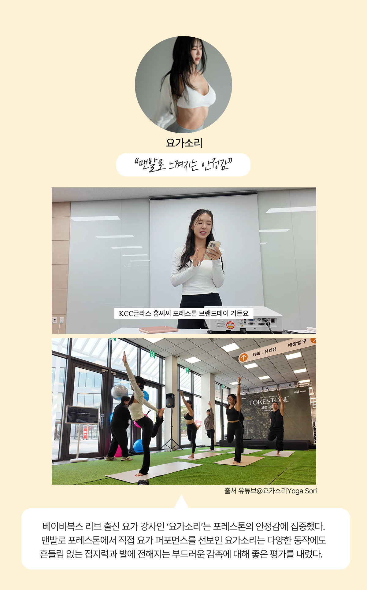 포레스톤 브랜드데이는 오프라인 체험에 그치지 않고 <요가소리>, <개랑해TV>, <인테리어하는 플랑주>, <베리엠제이>, <유지니> 등 여러 인플루언서를 통해 온라인 콘텐츠로 확장됐다. 각 인플루언서는 자신의 전문 분야와 라이프스타일에 맞춰 포레스톤의 장점을 각기 다른 방식으로 풀어냈다. 시청자들은 인플루언서들의 시선을 통해 포레스톤의 장점을 자연스럽게 체화하고 공감하게 되는 셈이다. 전문 분야가 다른 인플루언서들이 각자의 시선으로 포레스톤을 어떻게 경험했는지를 살펴보는 것 역시 또 하나의 재미 포인트다.