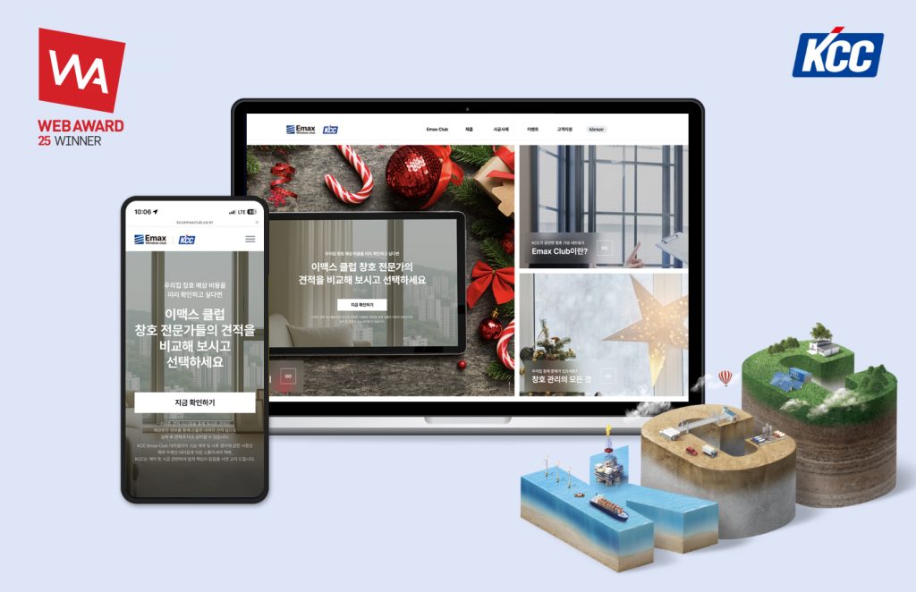 KCC(대표: 정재훈)의 창호 O2O(On-line to Off-line) 플랫폼 ‘이맥스 클럽(Emax Club)1) 홈페이지’가 ‘웹어워드 코리아 2025’에서 하우징분야 대상을 수상했다. 지난해 KCC 홈페이지로 건설부문 대상을 수상한데 이은 쾌거로, KCC의 웹사이트 구축 역량을 다시 한번 입증했다.