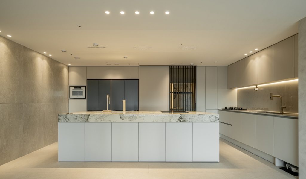 A. 장인이 한 땀 한 땀 수제로 제작하는 ‘맞춤 정장’처럼 고객 한 분, 한 분의 생활 방식과 취향에 맞춰 딱 맞는 옷처럼 공간을 설계해 드립니다. 매뉴얼대로 쭉 설명하고 끝나는 방식은 지양하고, 디자인 미팅을 평균 5번 정도 진행합니다. 고객님의 일상 루틴, 가족 구성원 수, 연령대는 기본이고요, 하루 식사 횟수는 물론 조리 동선, 테이블 위치, 의자 간격까지 전부 반영합니다. 예를 들어, 혼밥을 자주 하시는1인 가구 고객님께는 식탁이 아닌 아일랜드 키친 겸 테이블 구조로 제안한 적도 있었고요.