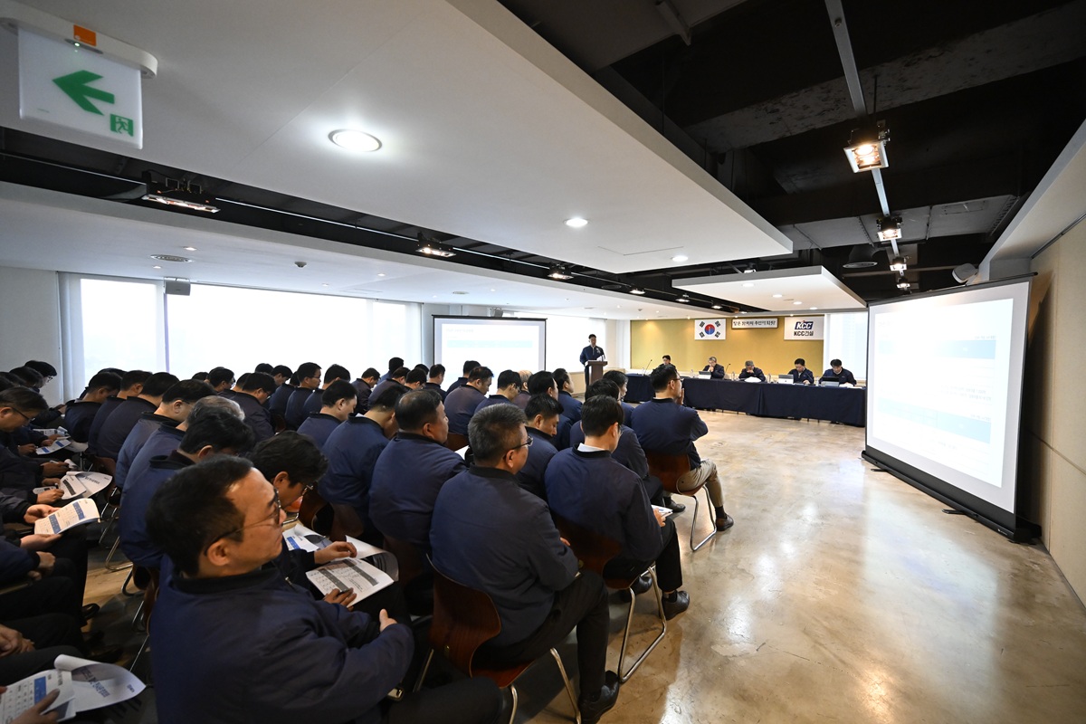 KCC건설은 지난 1월 5일 본사에서 2026년 시무식 및 상반기 전사운영회의를 개최하고, 새해 경영 환경 분석과 함께 전사 운영 방향 및 핵심 과제를 공유했다. 이날 회의에는 심광주 대표이사를 비롯해 각 부문 임원, 본부장, 부서장, 현장 소장 및 관리 책임자 등 약 140여 명이 참석했다.