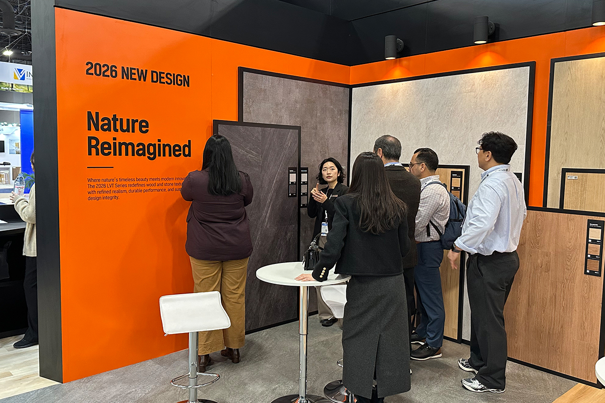 • 친환경 생산 기술 ‘4Re’와 원스톱 솔루션을 통해 ESG 경영 철학을 전달했으며, 제품별 QR코드를 활용해 실제 시공 사례를 입체적으로 보여주는 스마트한 전시 운영으로 바이어들의 큰 호평을 받았다.