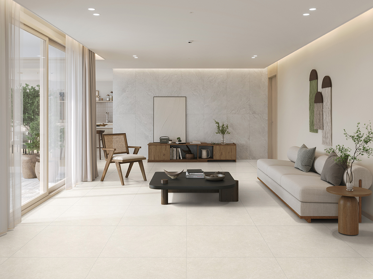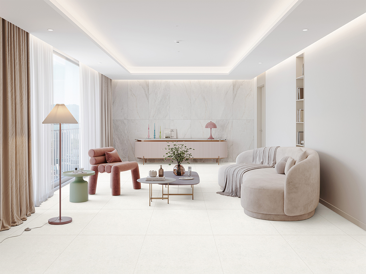 - 압도적 리얼리티: ‘리얼 엠보’ 기술로 석재의 세밀한 요철을 살렸으며, 597각 대규격과 ‘마이크로 베벨링’ 공법을 통해 이음매가 적고 일체감 있는 미니멀 인테리어를 구현한다.