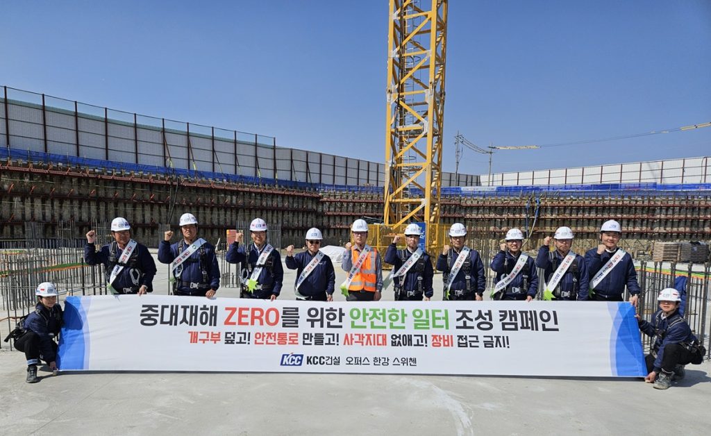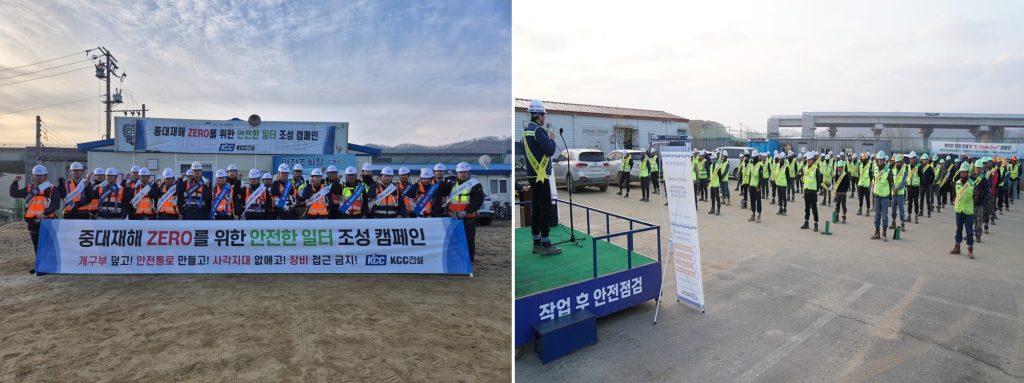 KCC건설은 ‘중대재해 ZERO’ 실현과 안전경영 고도화를 위한 ‘안전한 일터 조성 캠페인’ 선포식을 3월 25일 오전 7시부터 전국 현장을 대상으로 실시했다.